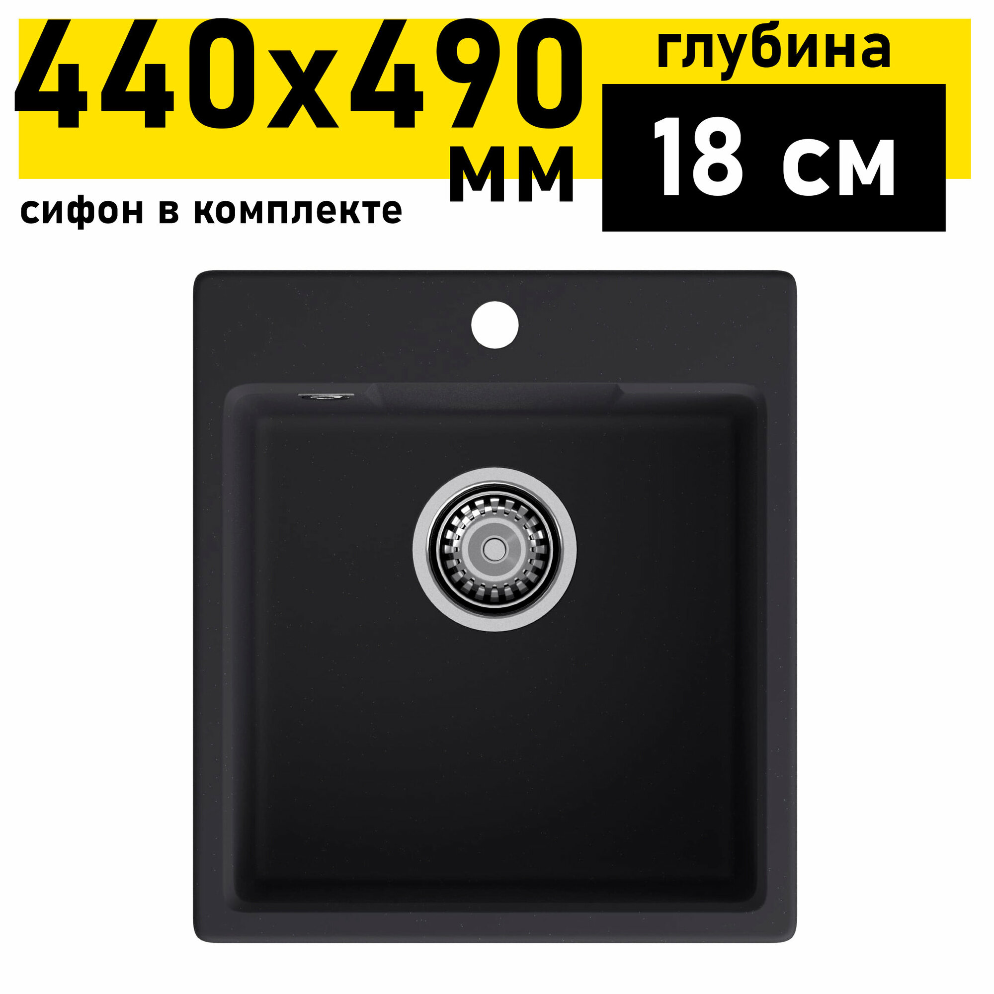 Мойка кухонная врезная, GranFest, Urban, кварцевый песок, 580х490 мм, одна чаша, черная, GF-UR-658