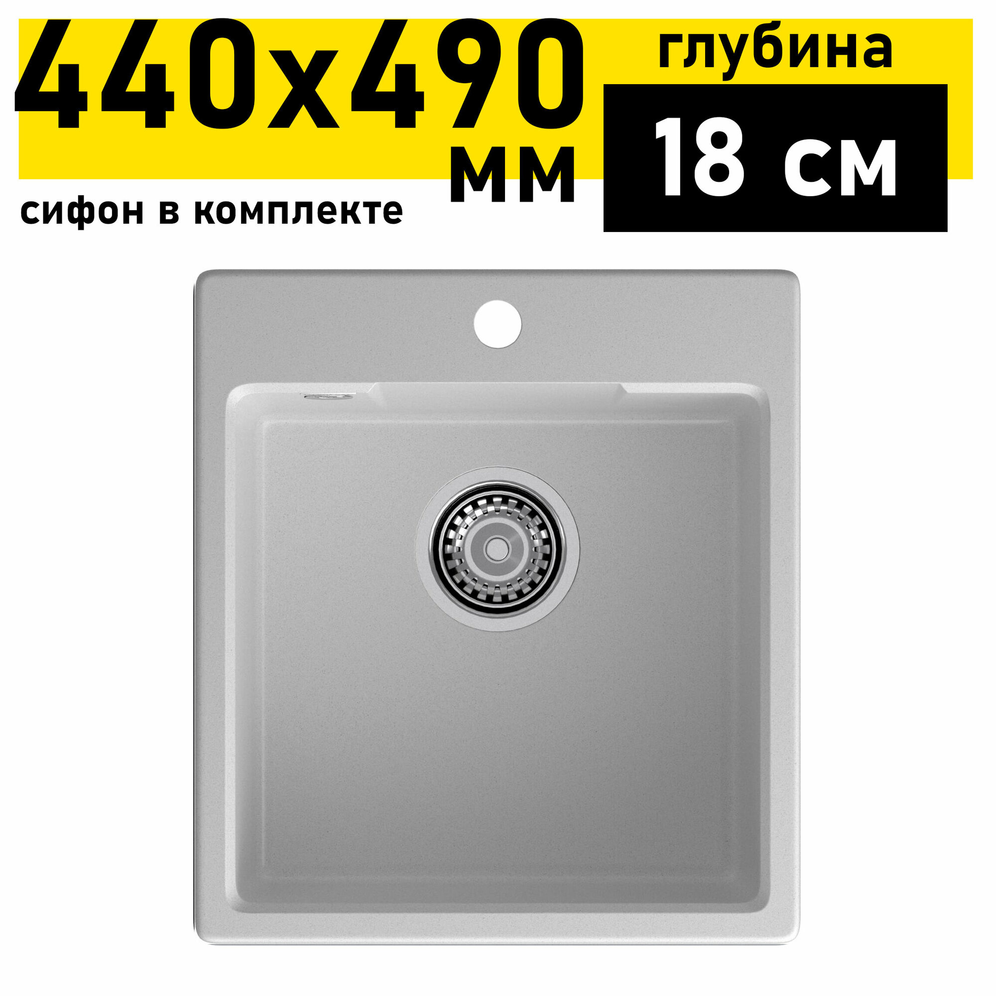 Мойка кухонная врезная, GranFest, Urban, кварцевый песок, 440х490 мм, одна чаша, серая, GF-UR-644