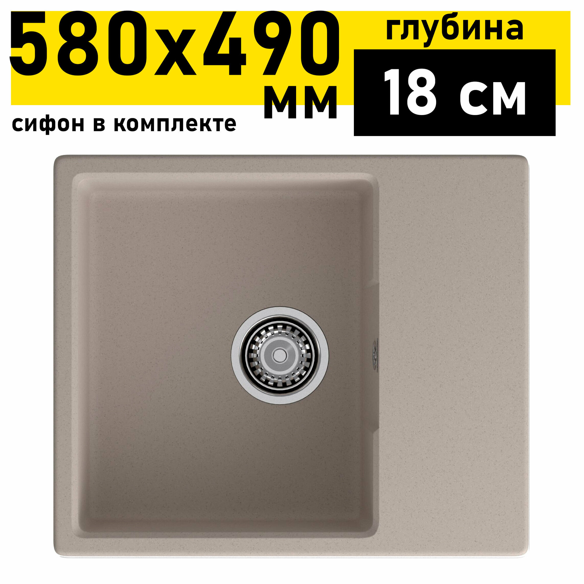 Мойка кухонная врезная, GranFest, Urban, кварцевый песок, 570х480 мм, 1 чаша+крыло, песочная, GF-UR-857L