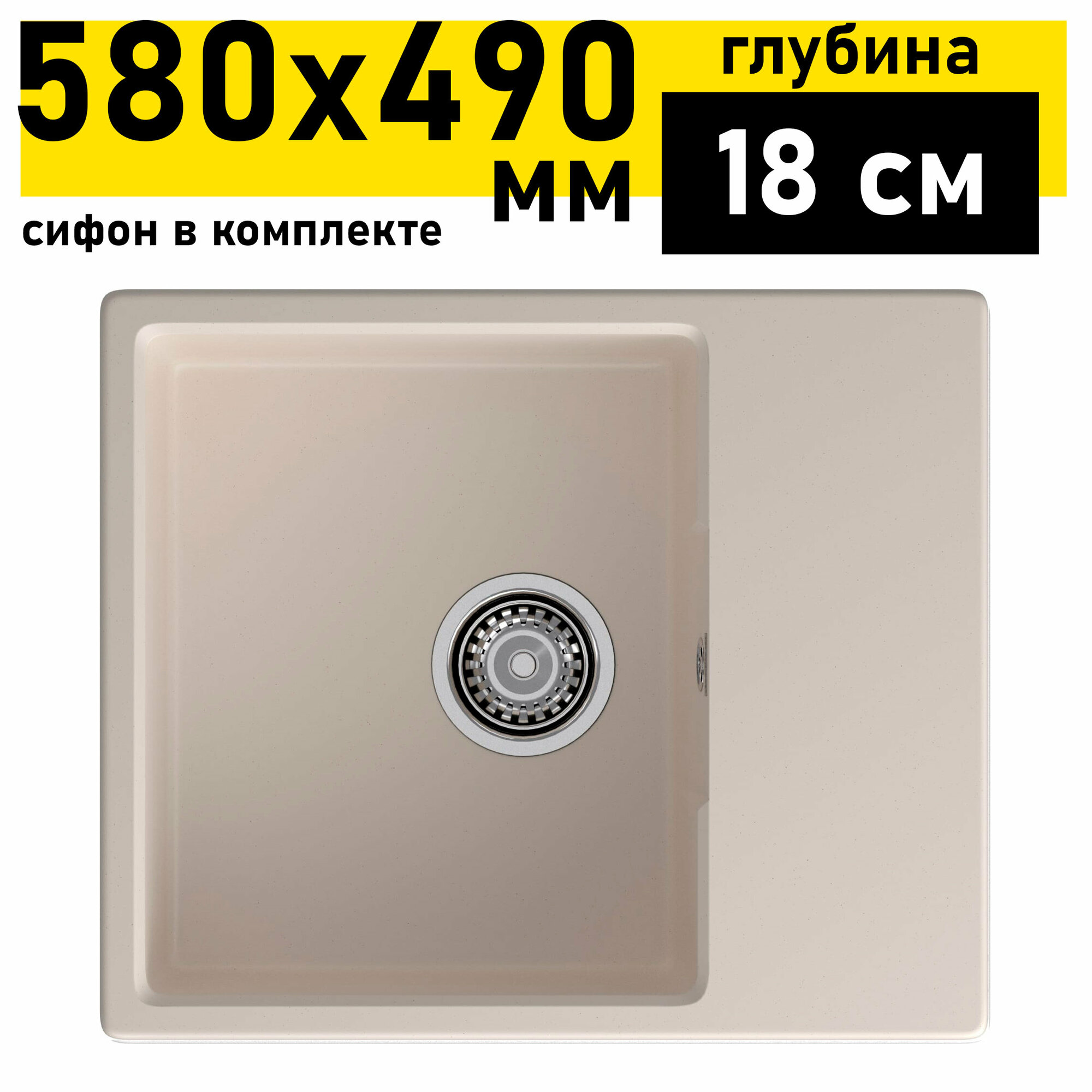 Мойка кухонная врезная, GranFest, Urban, кварцевый песок, 580х490 мм, 1 чаша+крыло, песочная, GF-UR-658L