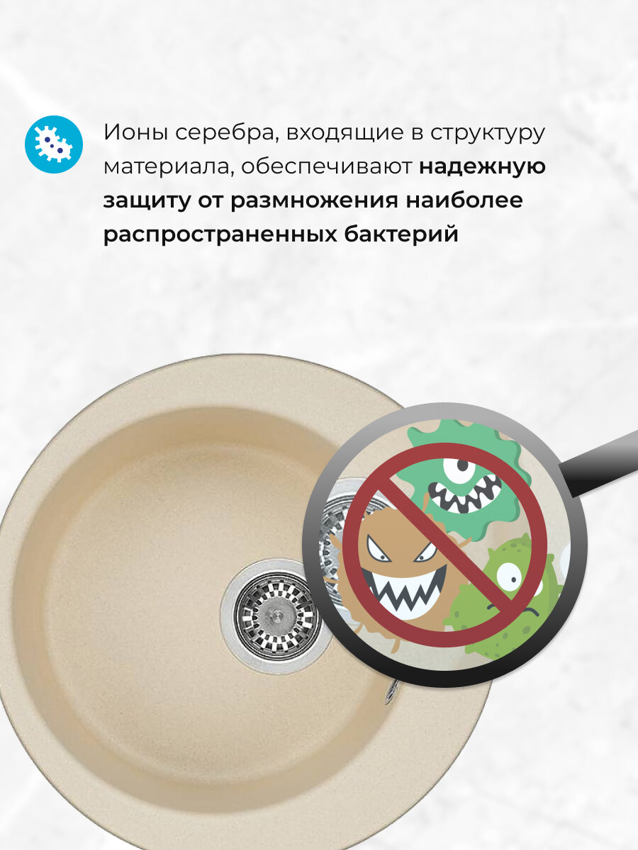 Кухонная мойка AQUATON Иверия 48х48х19 литьевой мрамор, цвет Песочный (1A711032IV220)