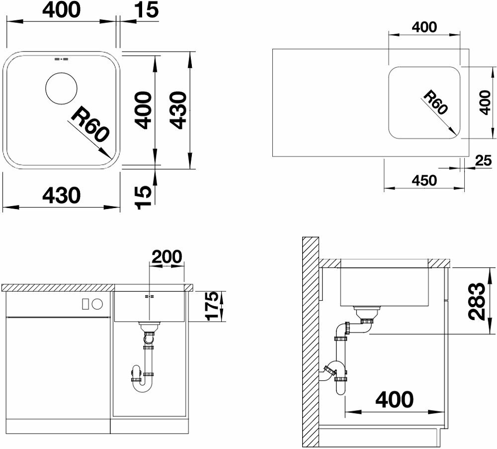 Мойка BLANCO SUPRA 400 U нержавеющая сталь полированная 518201