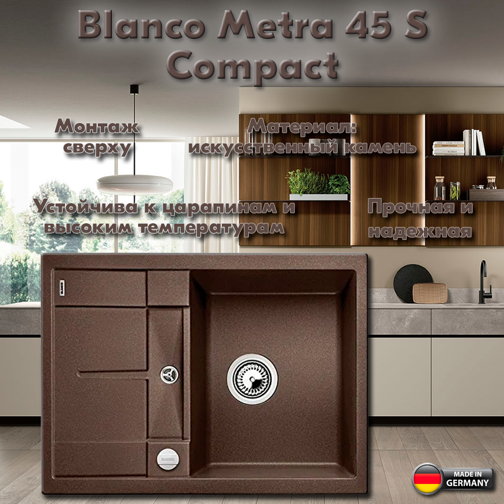 Blanco Мойка Blanco Metra 45S Compact кофе, клапан-автомат