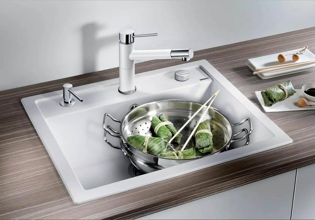 + Качество Blanco неоспоримо, прочный материал гарантирует отсутсвие царапин и трещин + Керамическая раковина намного тише металла |