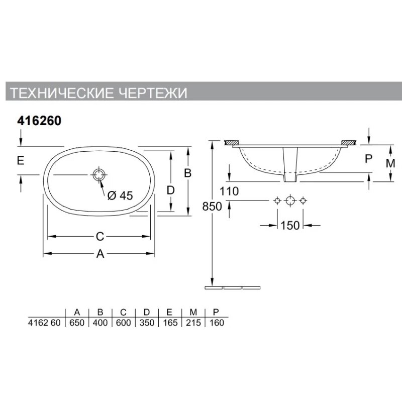 Раковина встраиваемая VILLEROY&BOCH O'NOVO 65 (4162 6001)
