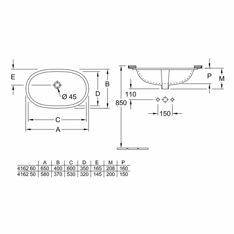 Раковина встраиваемая VILLEROY&BOCH O'NOVO 65 (4162 6001)