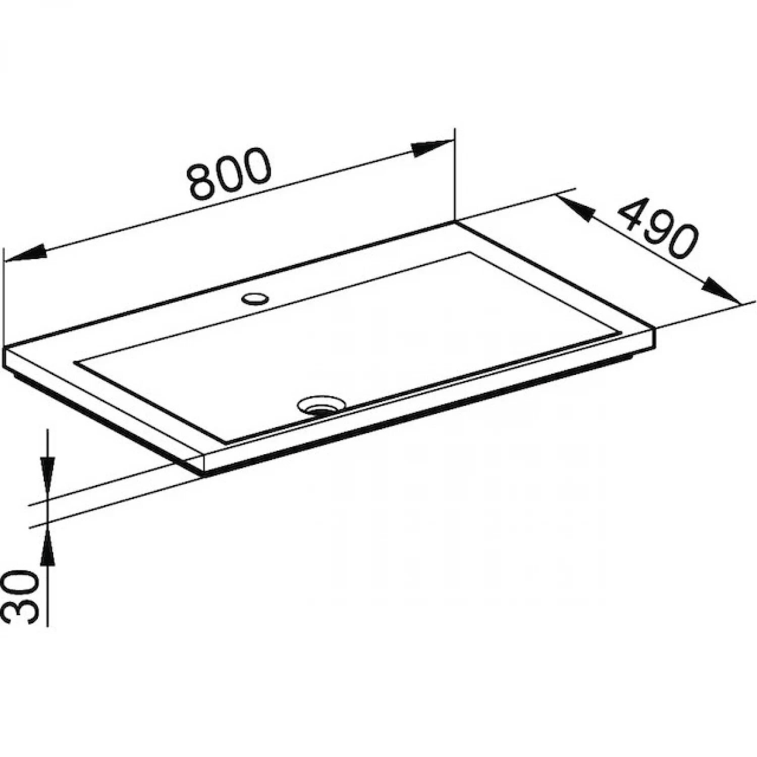Keuco 34061318001 Royal Reflex Умывальник из минерального литья 800х490х80 мм, для смесителей на 1 отверстие в комплекте с системой слива-перелива CLOU