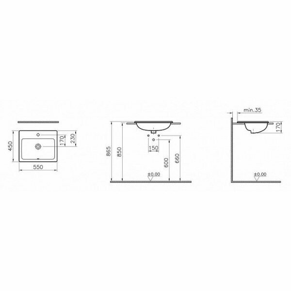 Раковина Vitra S20 (550х450х170) встраиваемая, с отверстием под смеситель, белая 5465B003-0001