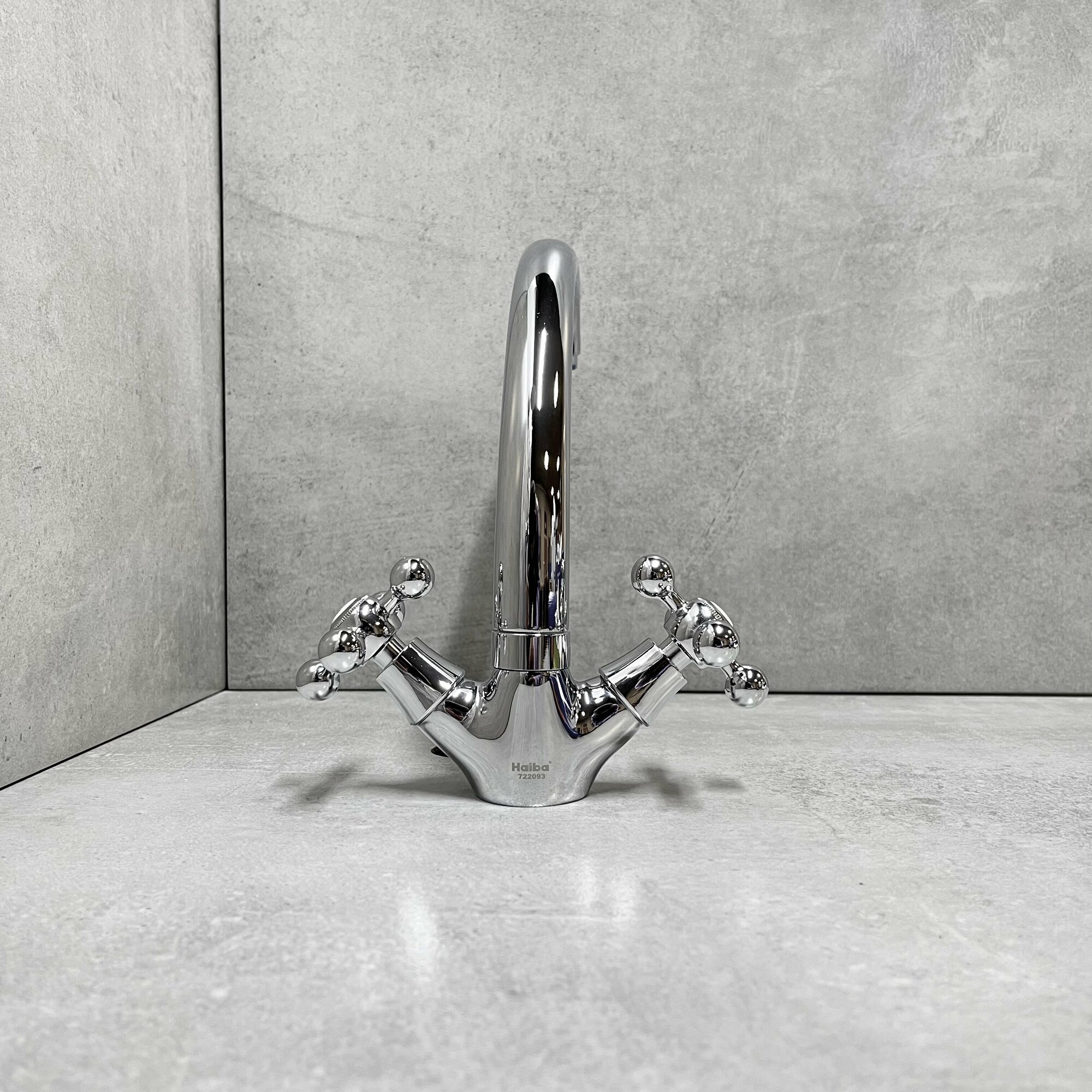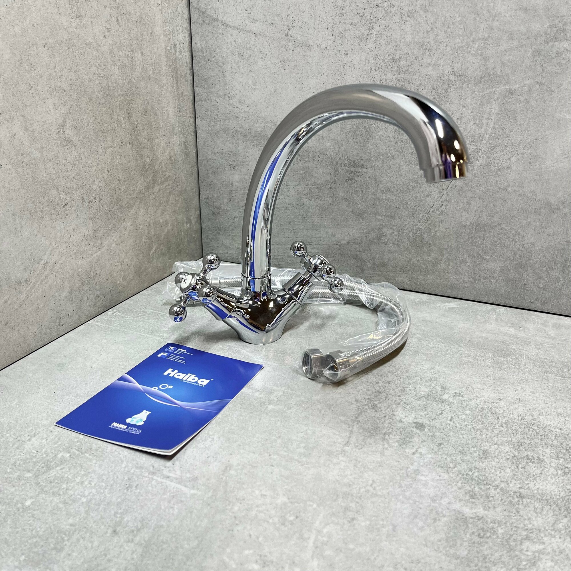 Смеситель Haiba HB4719, для кухонной мойки, двуручковый, с высоким поворотным изливом
