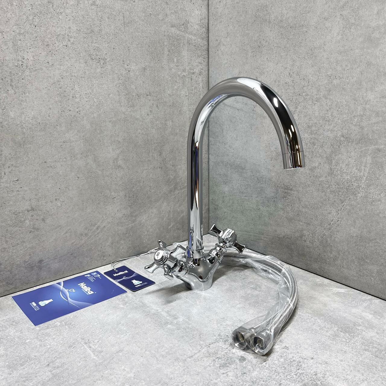 Смеситель Haiba HB4624, для кухонной мойки, двуручковый, с высоким поворотным изливом