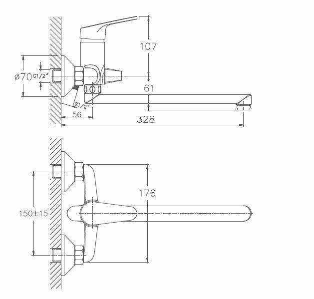 фактически излив крана прямой формы, а не S-образный как на картинке. |