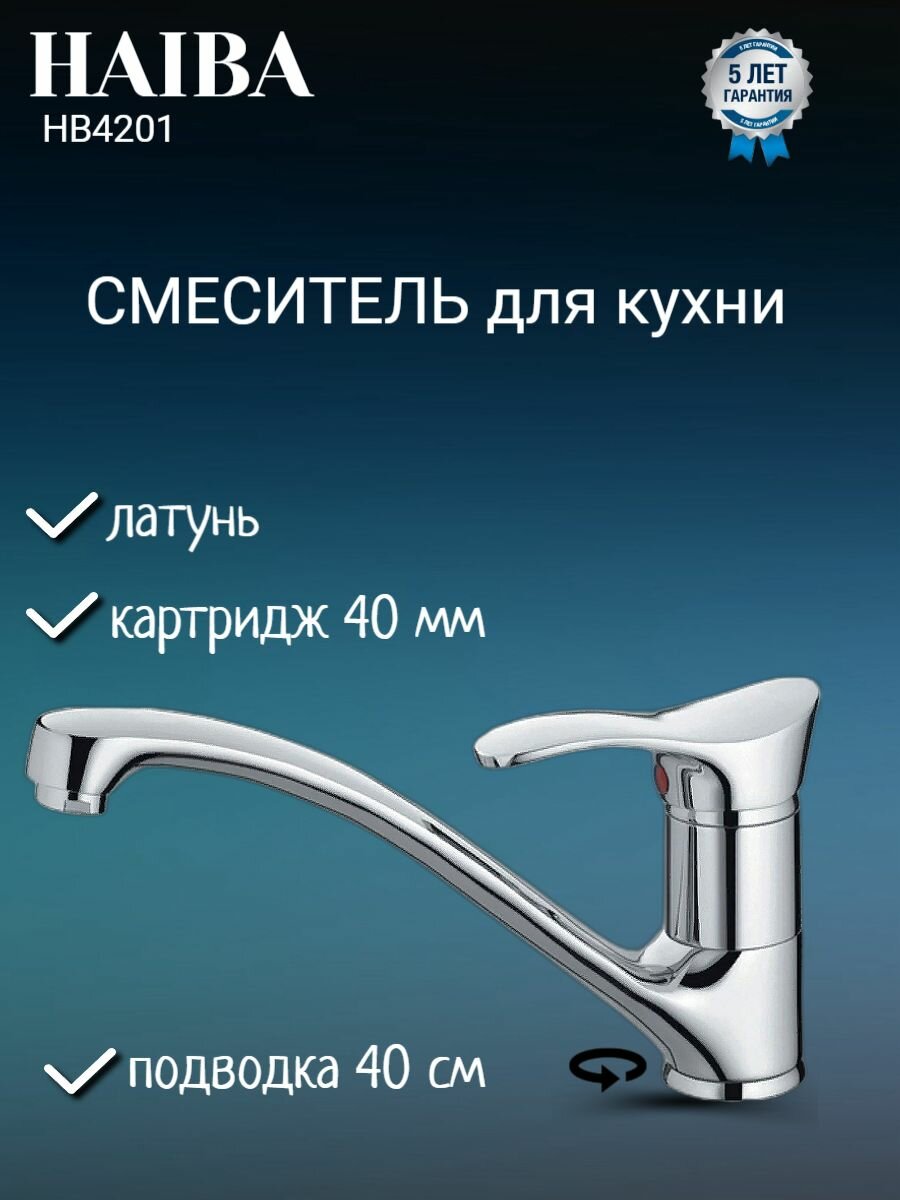 Смеситель для кухни HAIBA HB4201 хром