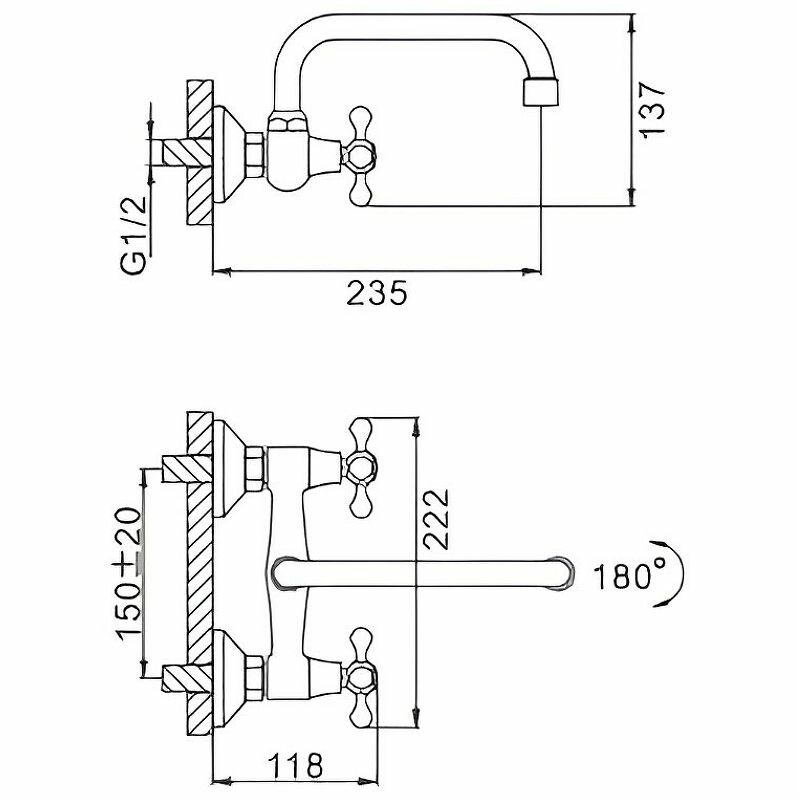 Смеситель для кухни настенный 1/2 кер F4712 FRAP Трилистник верхний