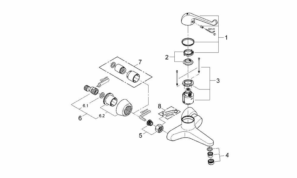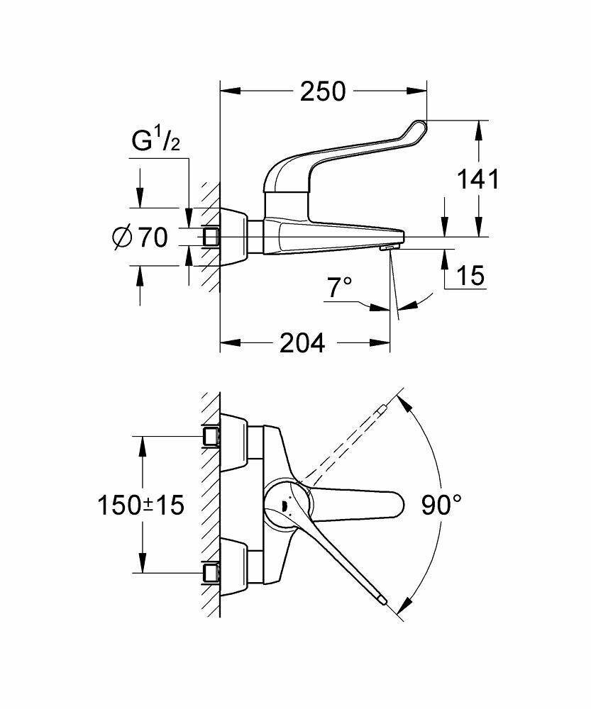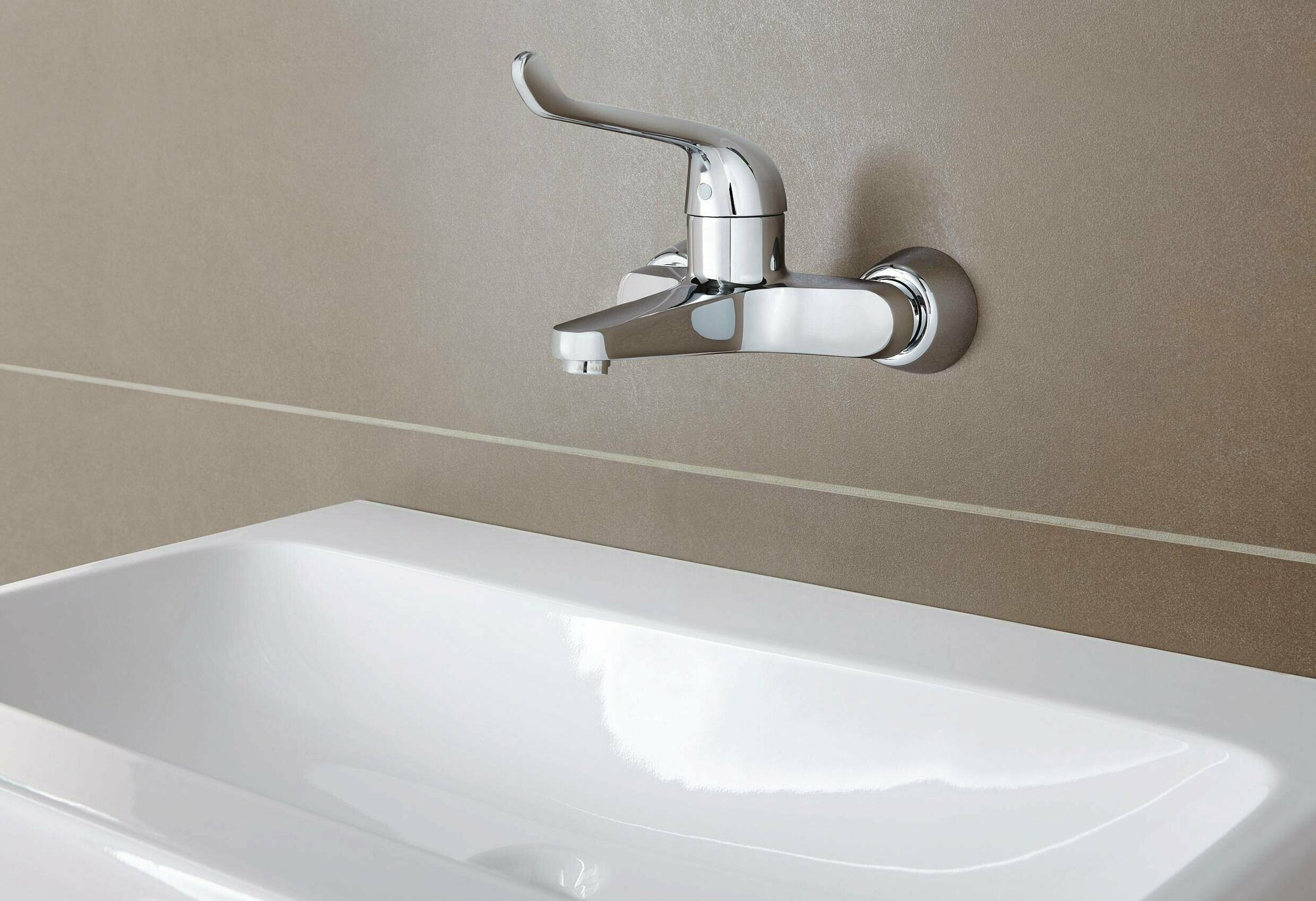 Смеситель для раковины Grohe Euroeco Special, настенный монтаж, безопасный, рычаг 170мм, вынос 204мм, хром 32795000
