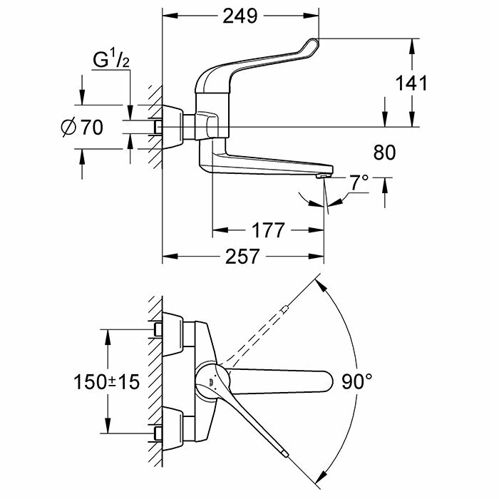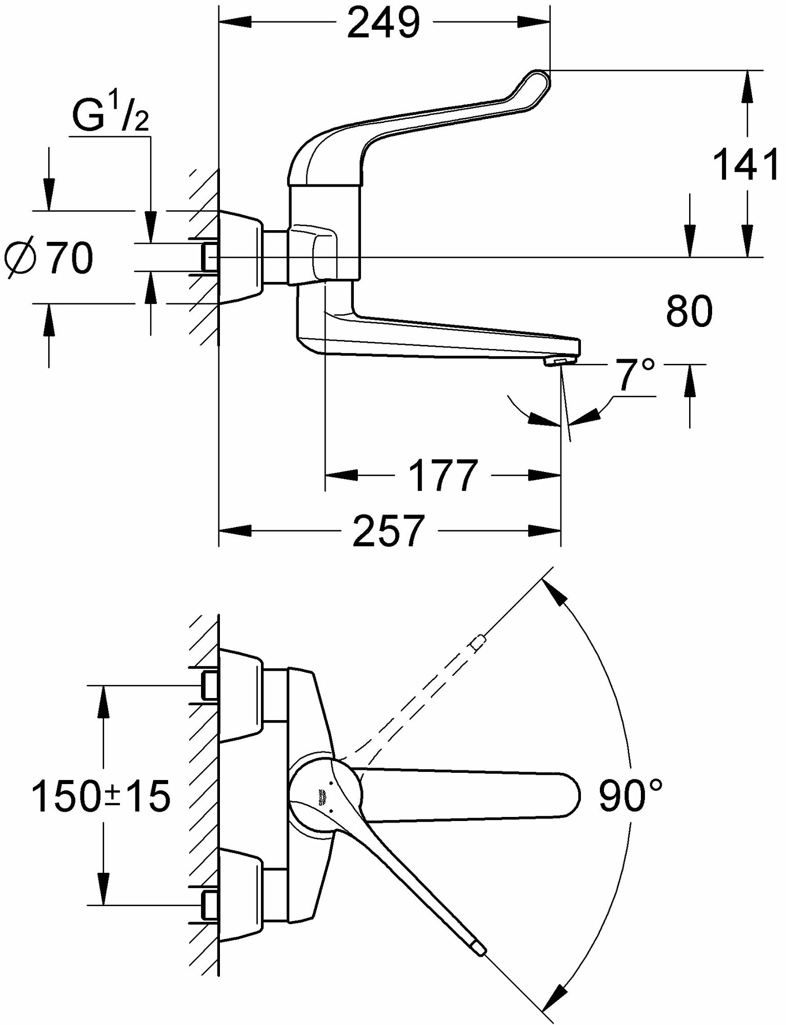 Смеситель для раковины GROHE Euroeco Special (вынос 256 мм, длина рычага 170 мм), хром (32793000)