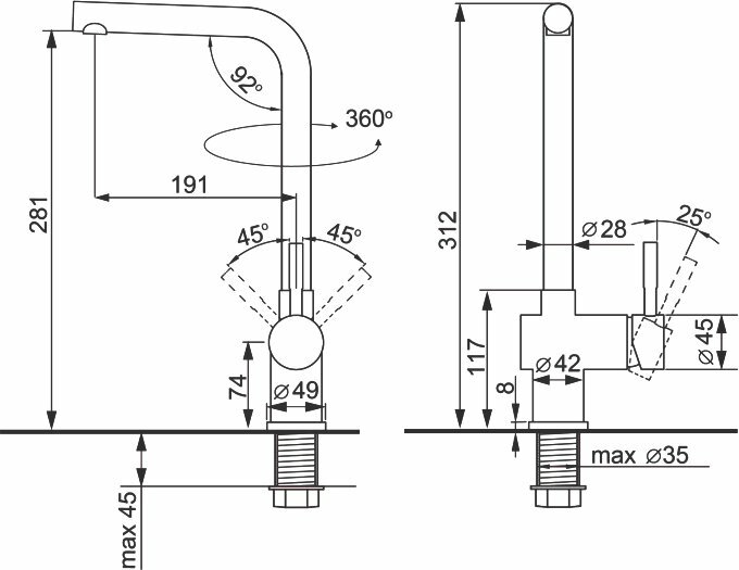 | Форма излива | традиционная |