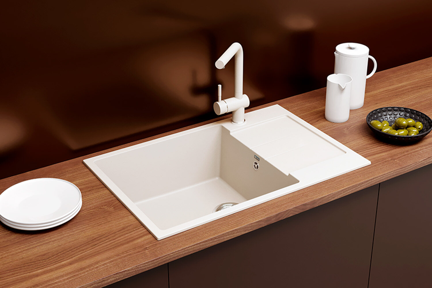 | Плюсы: | Цветовая гамма под мойку и интерьер, наличие крана для питьевой воды. |