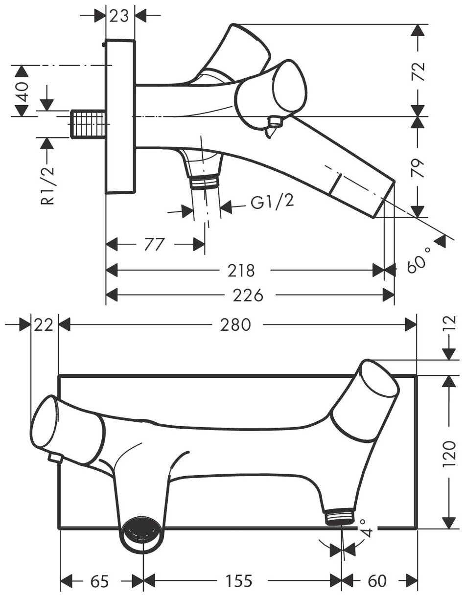 Купить Смеситель Axor Starck Organic 12410000 для ванны