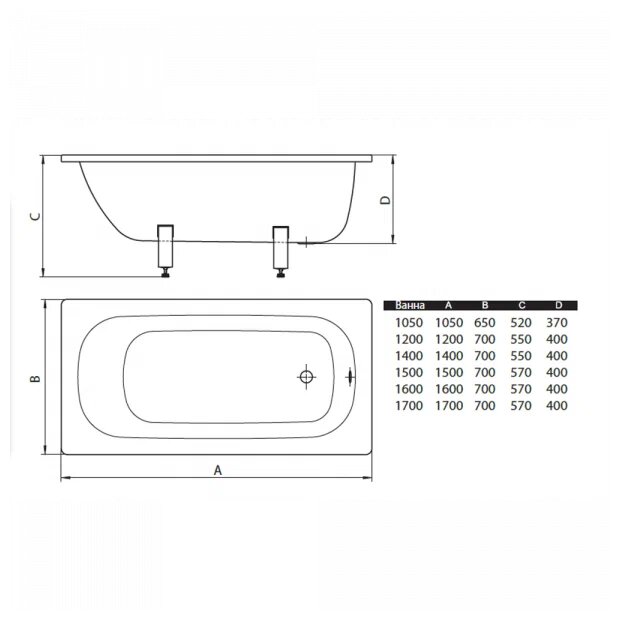 Ванна RAVAK Classic 120x70 акрил