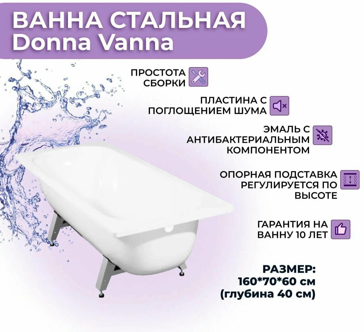 Стальная ванна ВИЗ Donna Vanna 140 интересное: