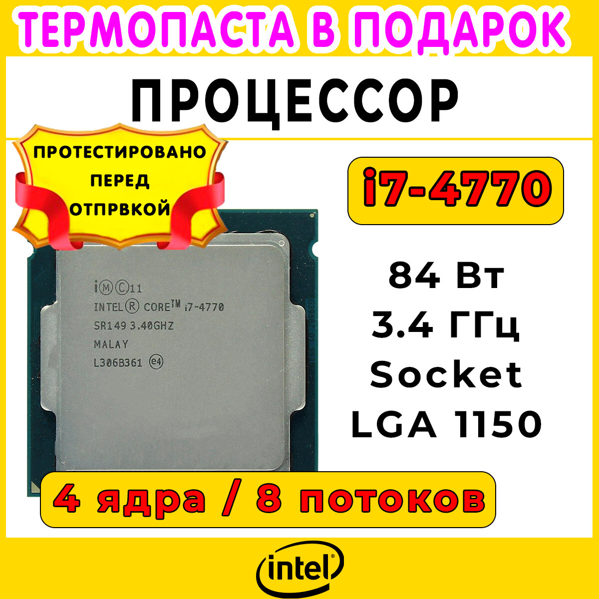 Купить Процессор intel Core i7-4770 сокет 1150 4 ядра 8 потоков 3,4-3,8ГГц 84Вт OEM