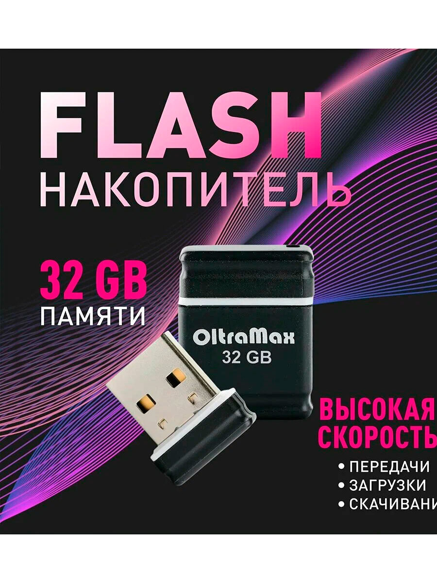 Флешка 32ГБ USB2.0 OltraMax мини 50 черная