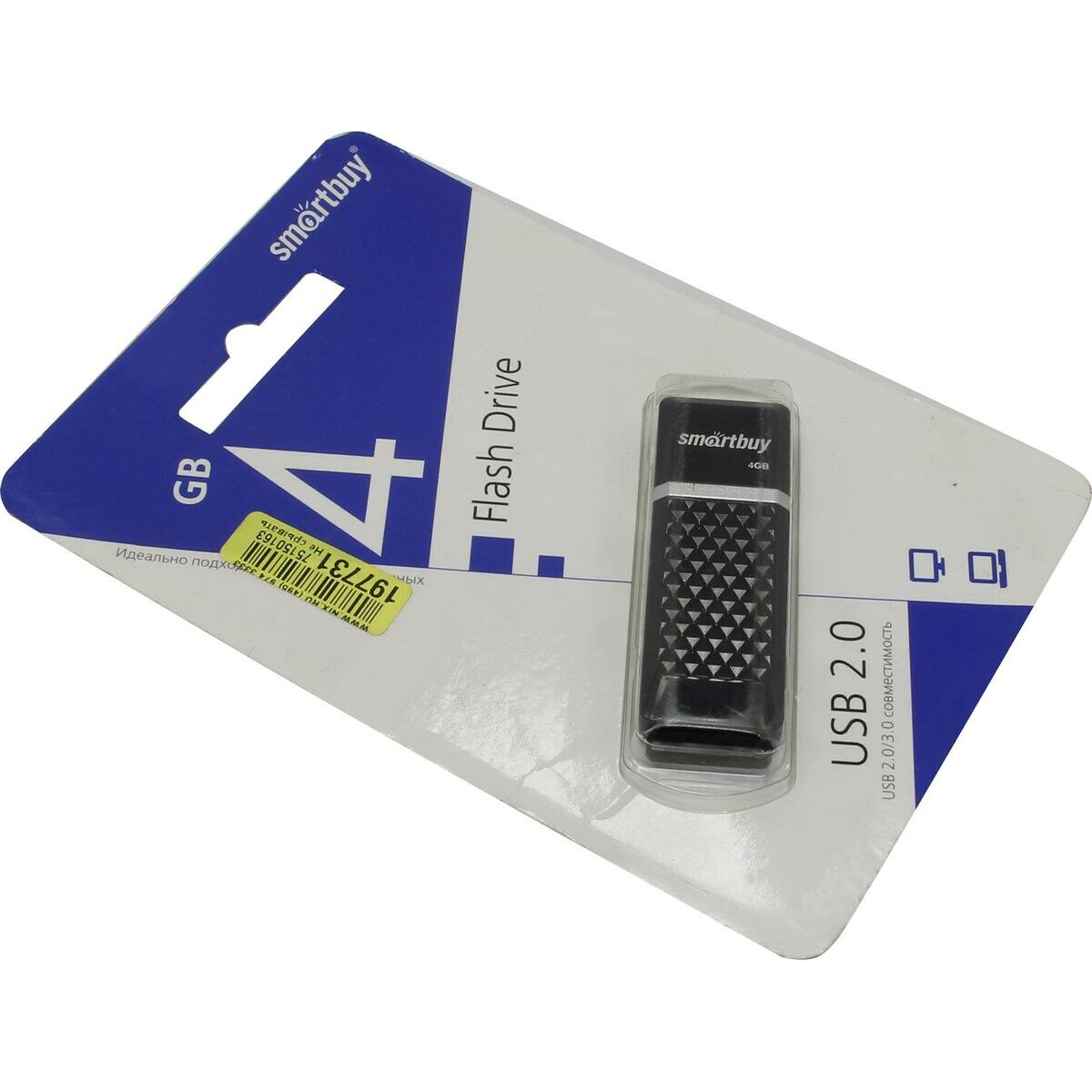 Память Smart Buy "Quartz" 4GB, USB 2.0 Flash Drive, черный (арт. 225105)