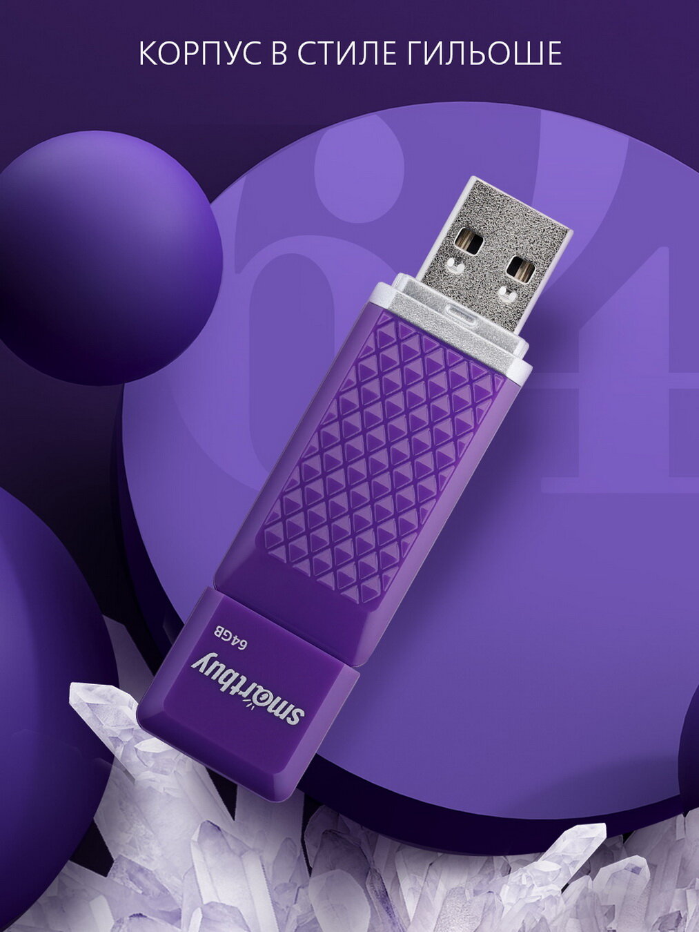 2 шт. Память Smart Buy "Quartz" 64GB, USB 2.0 Flash Drive, фиолетовый