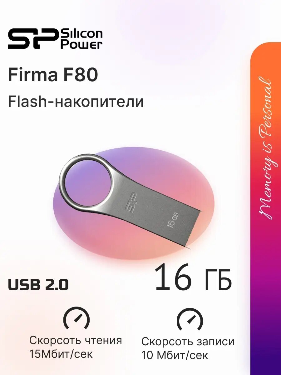 Флеш накопитель 16Gb Silicon Power Firma F80, USB 2.0, Серебро, металл