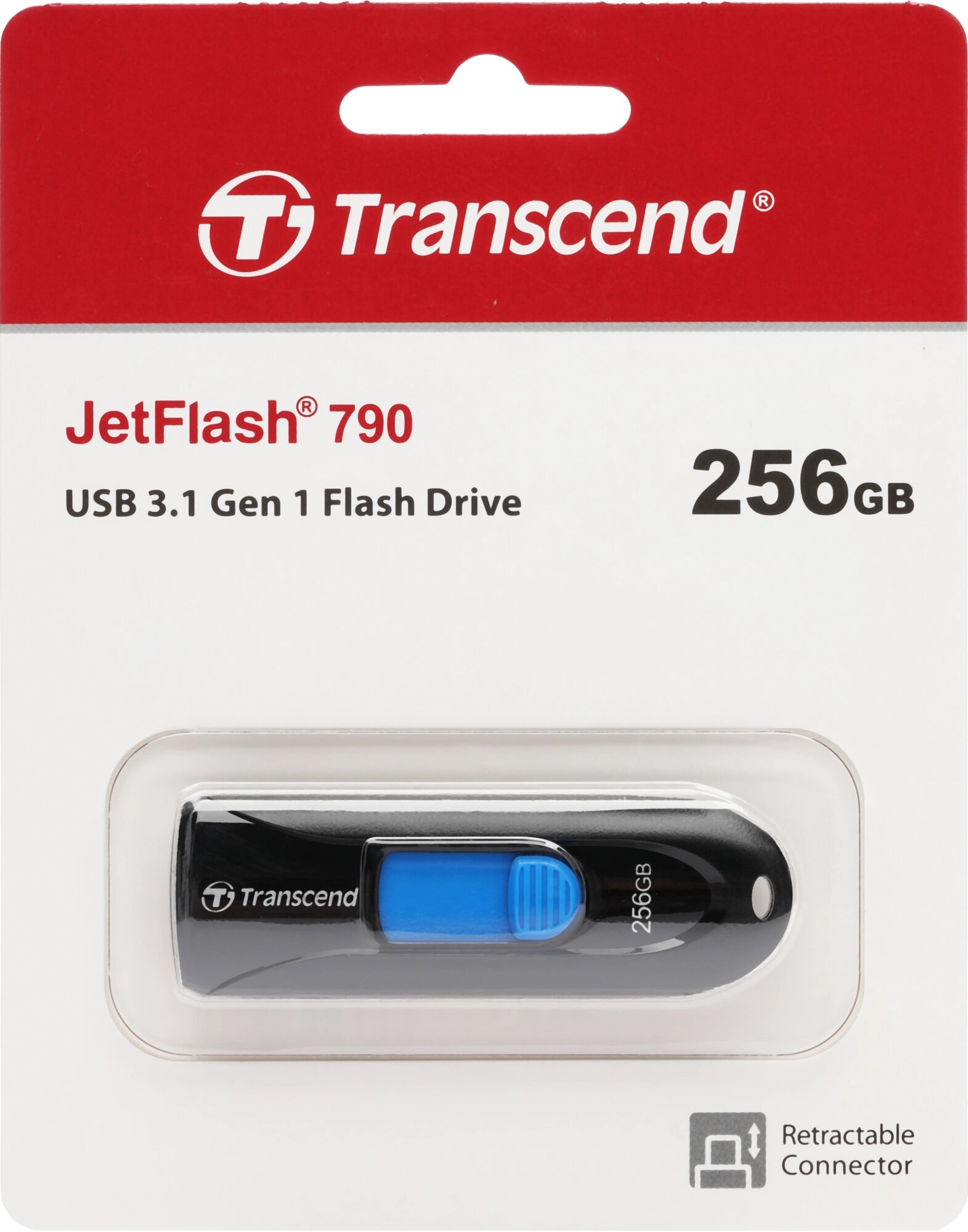 Флешка Transcend JetFlash 790 256 ГБ, 1 шт., черный/синий