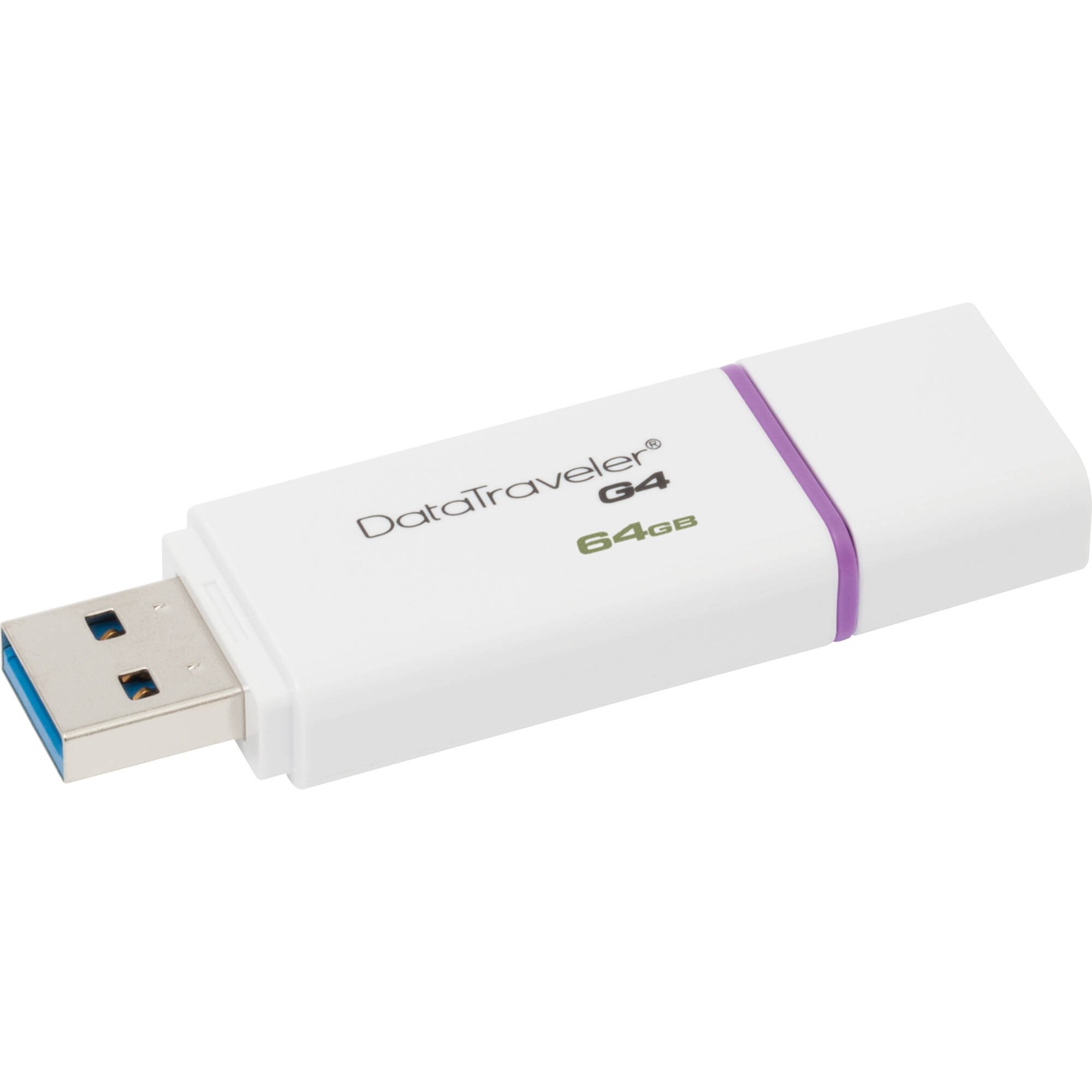 Внешний носитель информации USB-Flash Kingston 64Gb DataTraveler G4, USB 3.1 Gen 1 Type-A, пластик, бело-фиолетовый