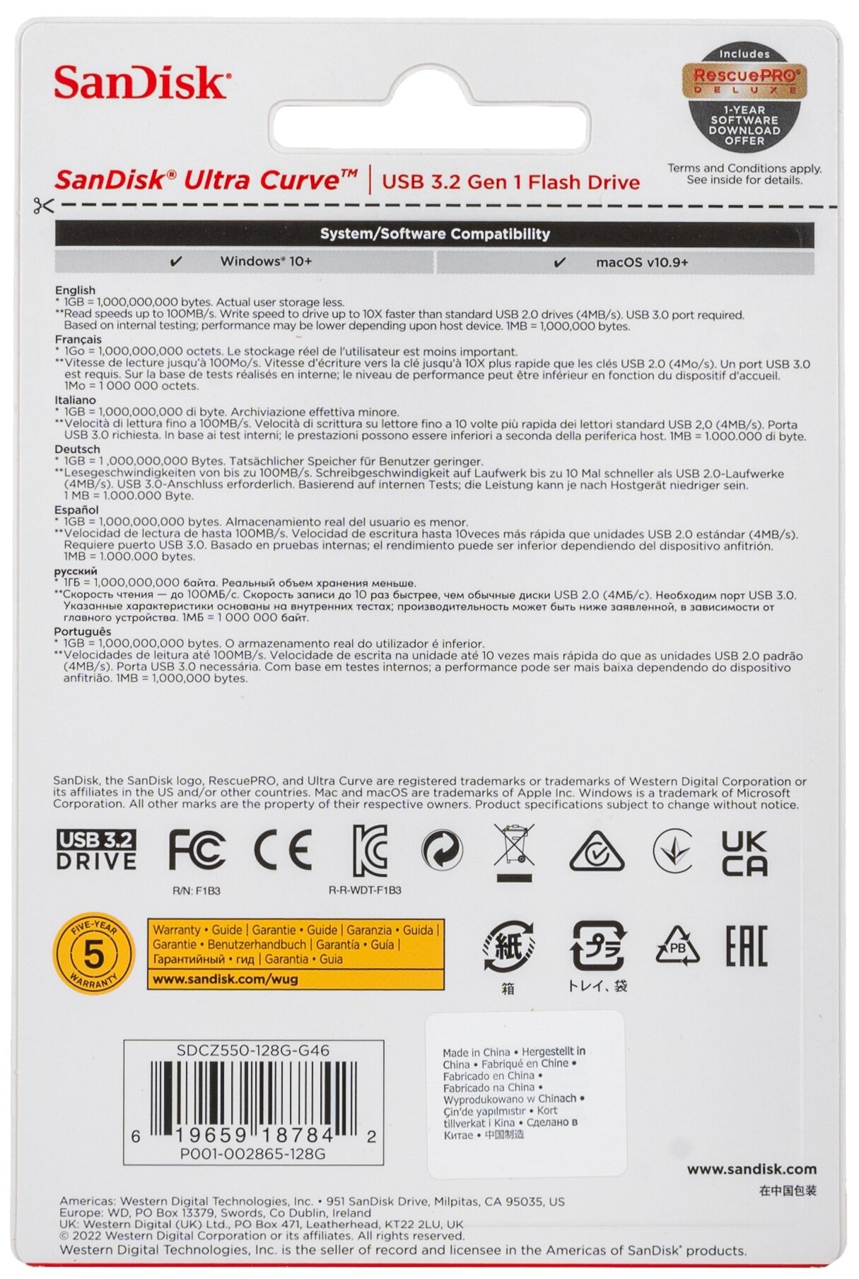Купить Флеш-накопитель (флэшка) SanDisk USB 3.2 128 ГБ Flash drive Ultra Curve