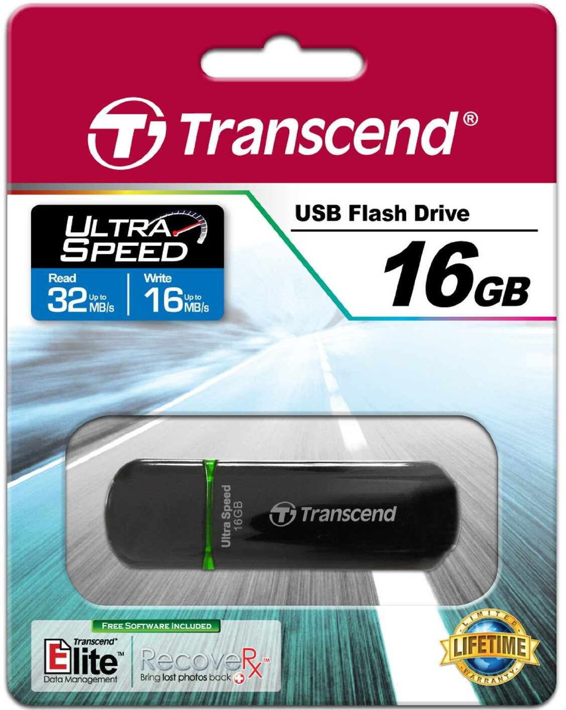 Флешка Transcend JetFlash 600 16 ГБ, 1 шт., черный/зеленый