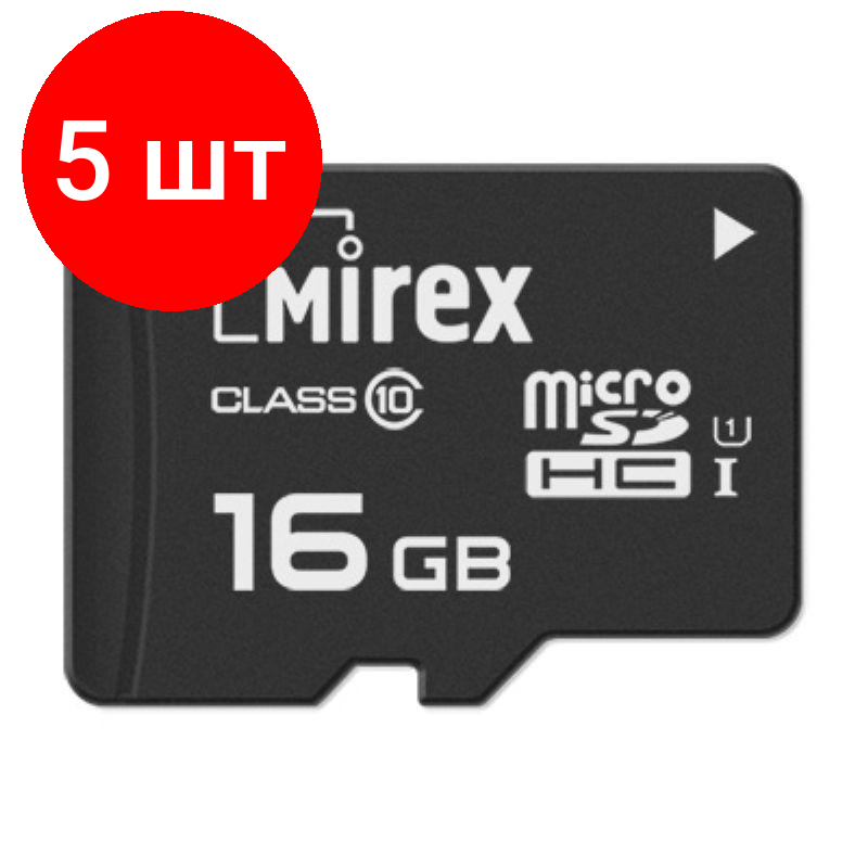 Купить Комплект 5 штук, Карта памяти Mirex microSDHC 16Gb (UHS-I, U1, class 10) (13612-MCSUHS16)