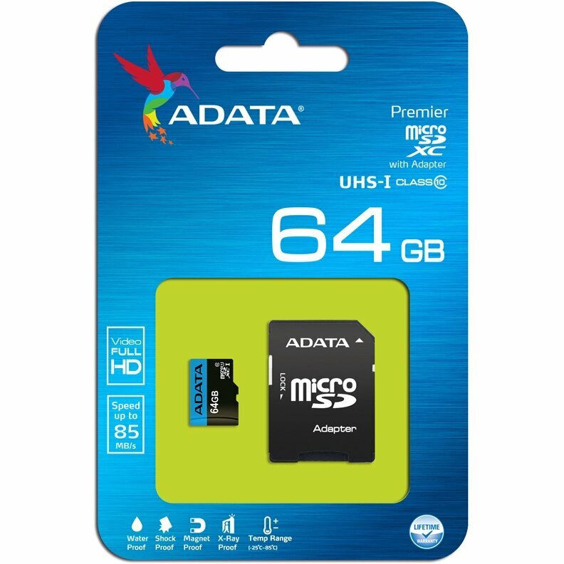 Карта памяти microSDXC A-Data 64Gb class 10 Premier UHS-I 80MB/s AUSDX64GUICL10-RA1, 1шт.