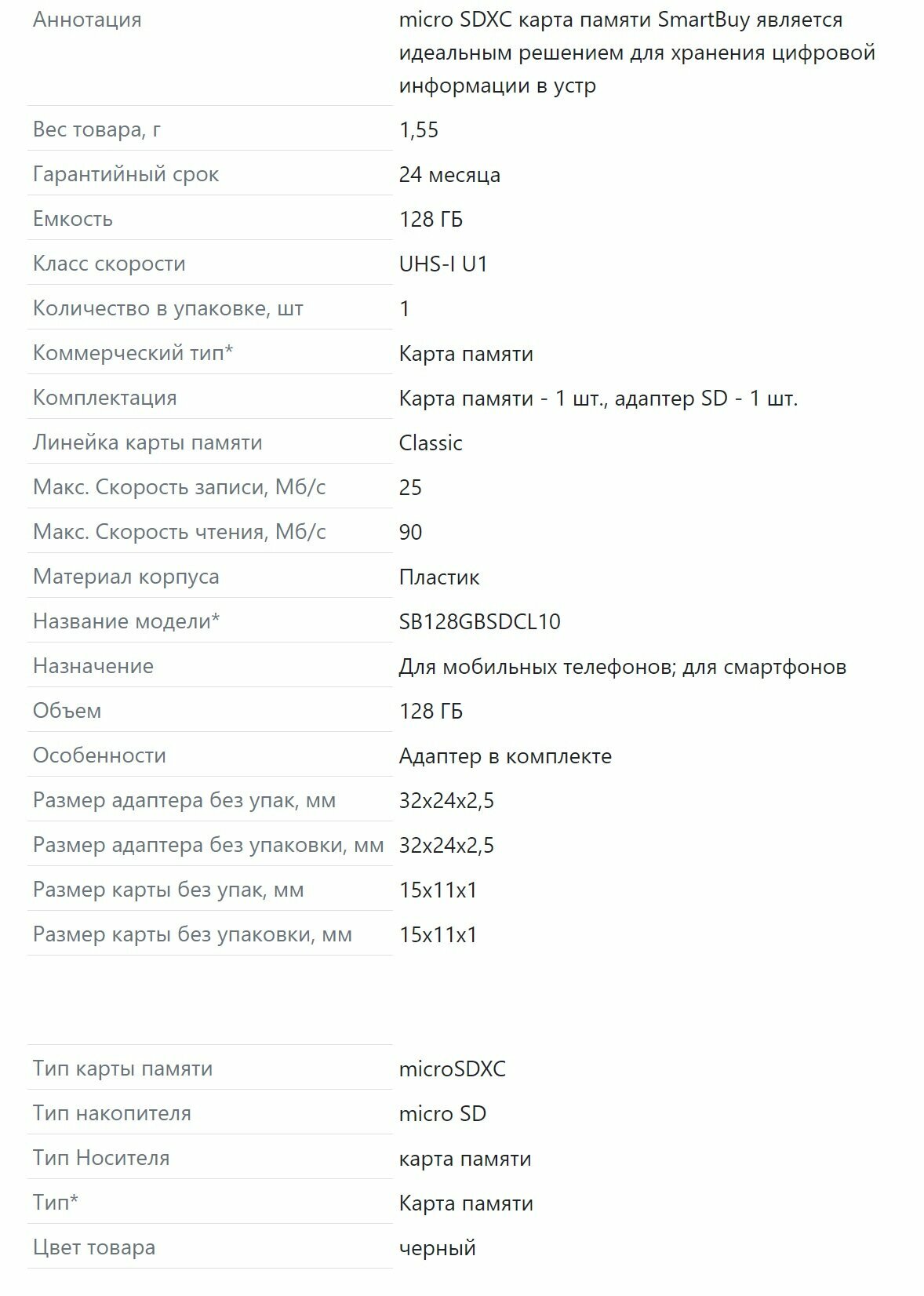 Карта памяти Smartbuy Micro-SD (Объём карты: 128 Gb)