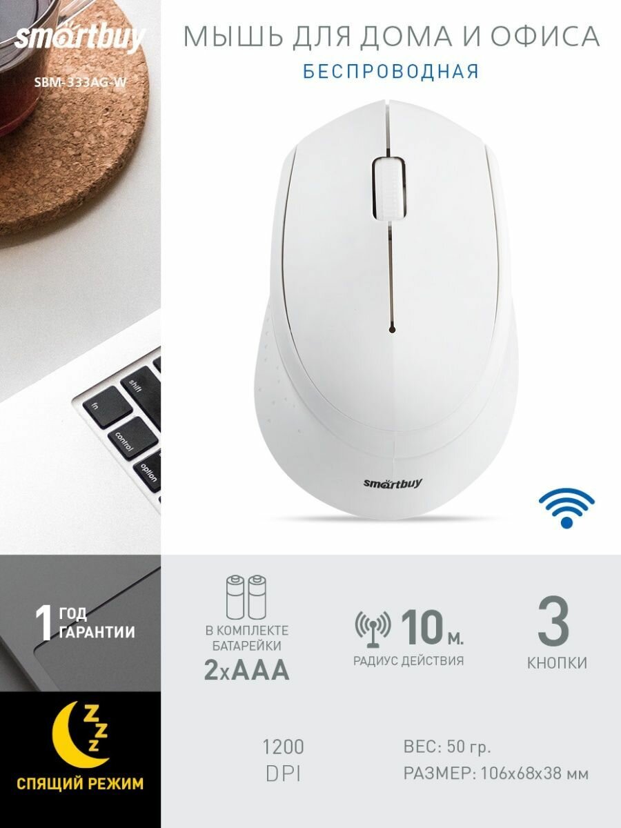 Мышь беспроводная Smartbuy ONE 333AG-W белая (SBM-333AG-W) / 80
