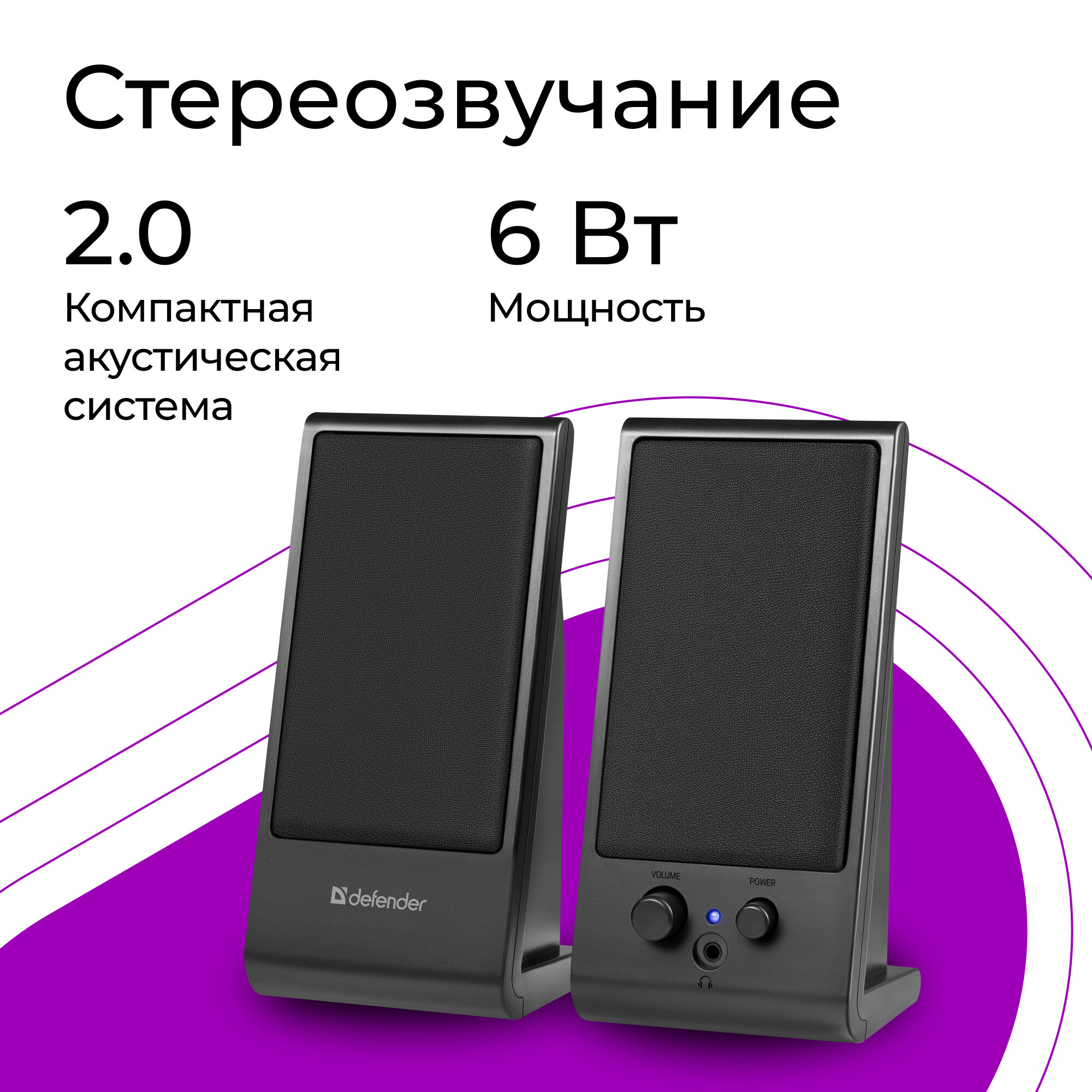 Колонки компьютерные DEFENDER SPK-165/170, комплект 2 шт., 2.0, 2х2 W, пластик, черные, разъем для наушников, 65165
