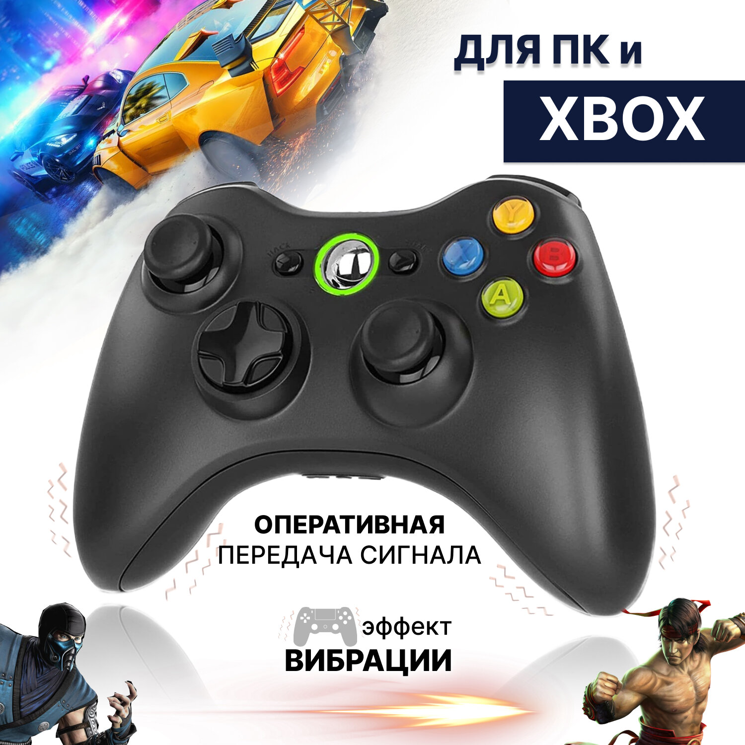 Беспроводной геймпад с виброотдачей и обратной связью для Xbox 360 и ПК