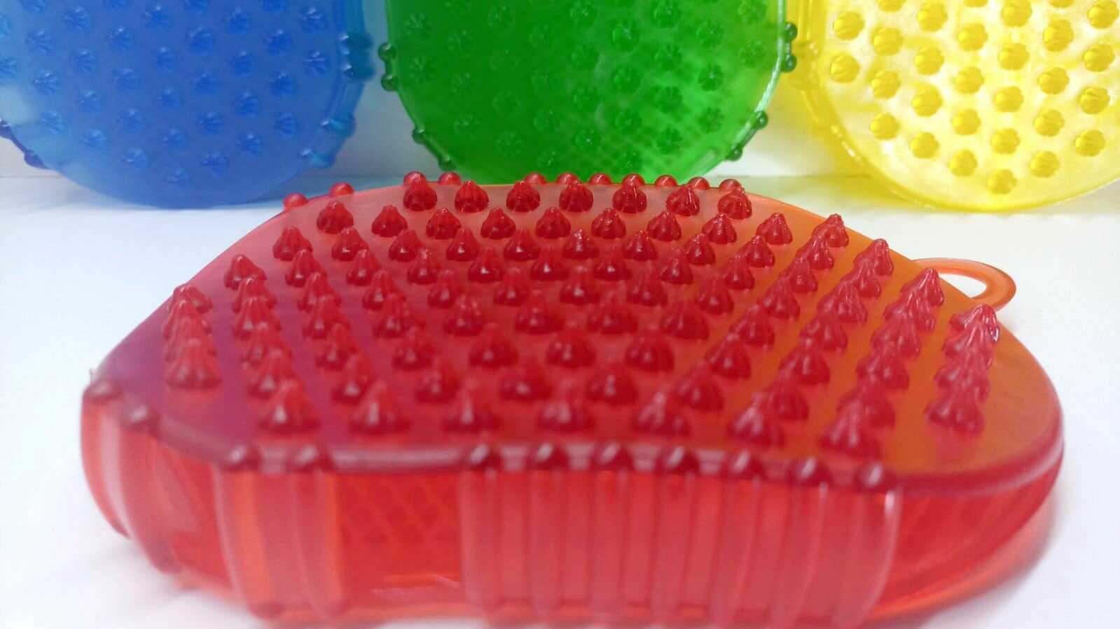 | Отзыв: | Надо приспосабливаться, чтобы щётка не соскальзывала с ладони. На боковой поверхности есть удобные отверстия и можно найти удобный способ расположения пальцев, чтобы надёжно удерживать массажёр. |
