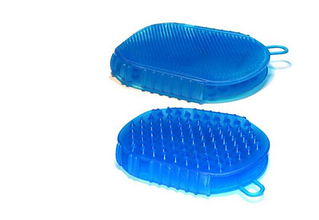 Чудо-варежка, массажер для тела. Имеет две разные поверхности. Более мелкие мягкие иголочки и более крупные пожестче. Активно рекламируется сейчас косметологами. Используется для антицеллюлитного массажа. Удобно применять в ванне с мылом и гелем для тела. Недостатки: Если честно, у меня до него руки не доходят. Раз попробовала и все. Особо не прониклась. Ну, не верю я в действие пупырчатого силикона. Висит в ванной на крючке. Если подумать, то почти все мочалки и щетки - тоже чудо-массажеры. Плюс еще и отмывают наше тело. |