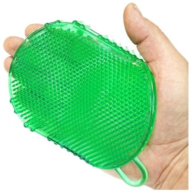 Чудо-варежка, массажер для тела. Имеет две разные поверхности. Более мелкие мягкие иголочки и более крупные пожестче. Активно рекламируется сейчас косметологами. Используется для антицеллюлитного массажа. Удобно применять в ванне с мылом и гелем для тела. Недостатки: Если честно, у меня до него руки не доходят. Раз попробовала и все. Особо не прониклась. Ну, не верю я в действие пупырчатого силикона. Висит в ванной на крючке. Если подумать, то почти все мочалки и щетки - тоже чудо-массажеры. Плюс еще и отмывают наше тело. |