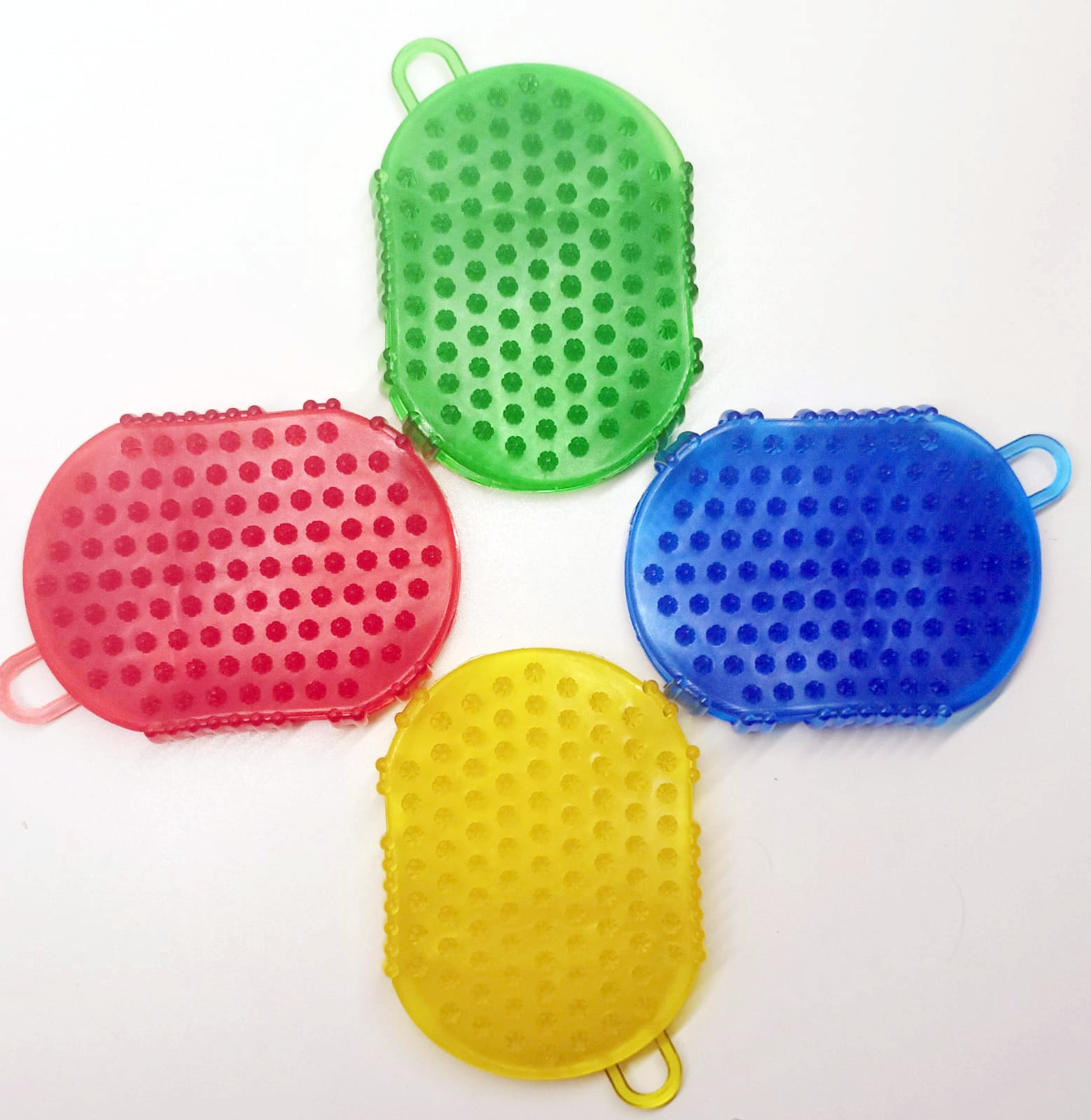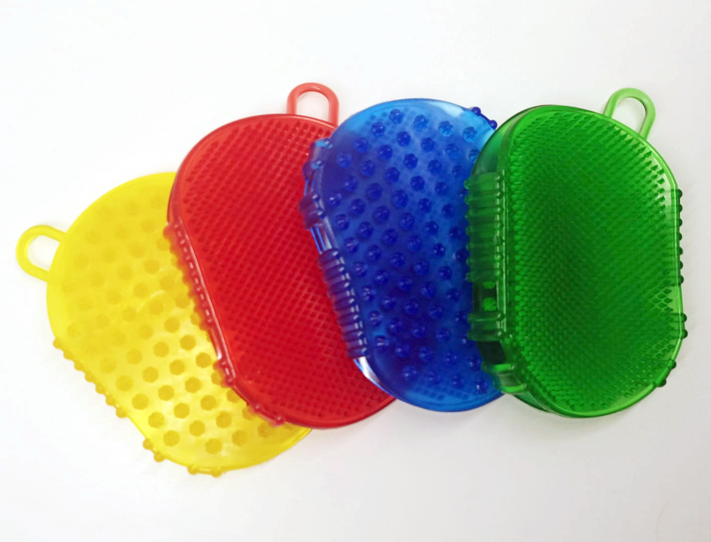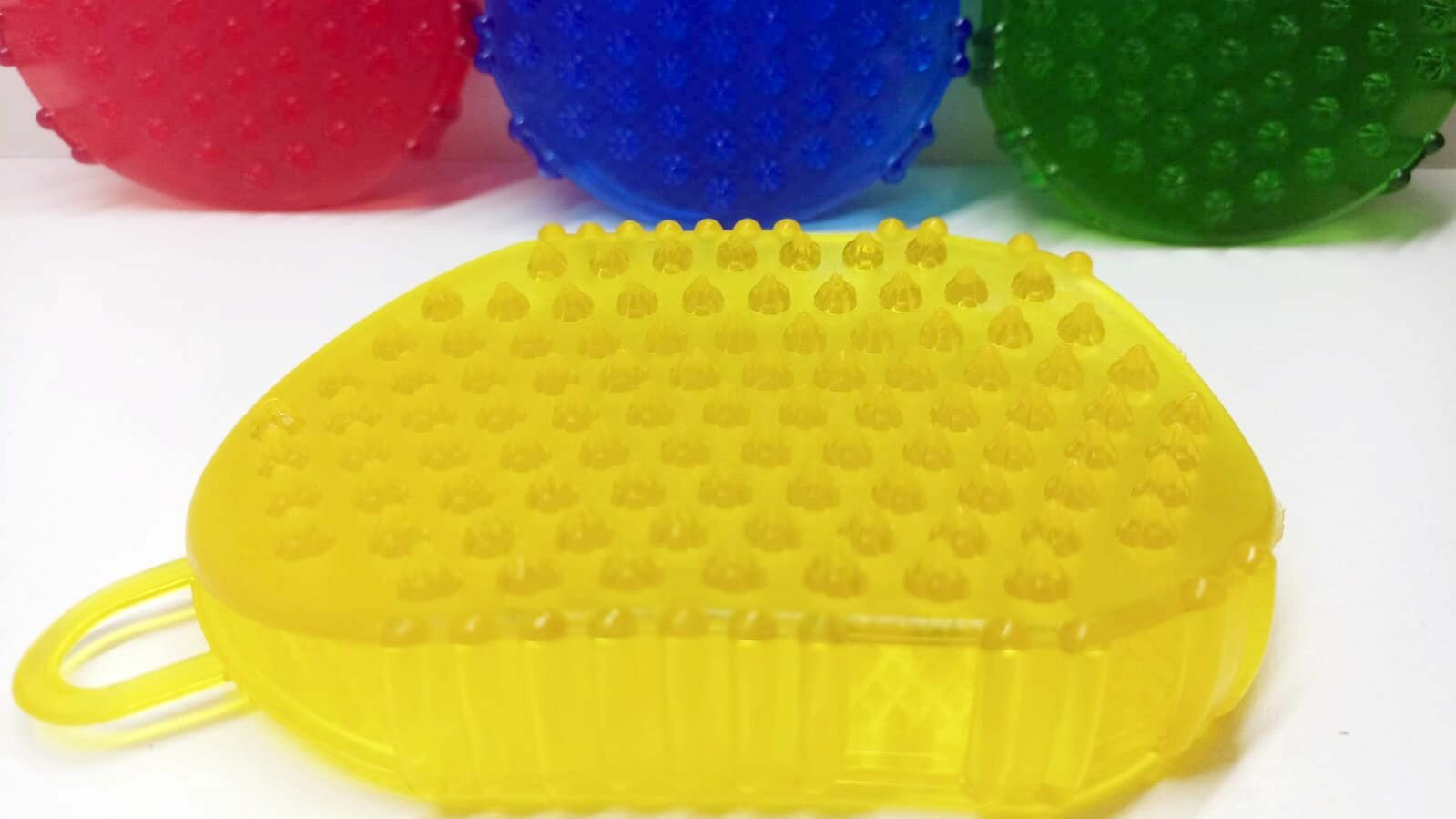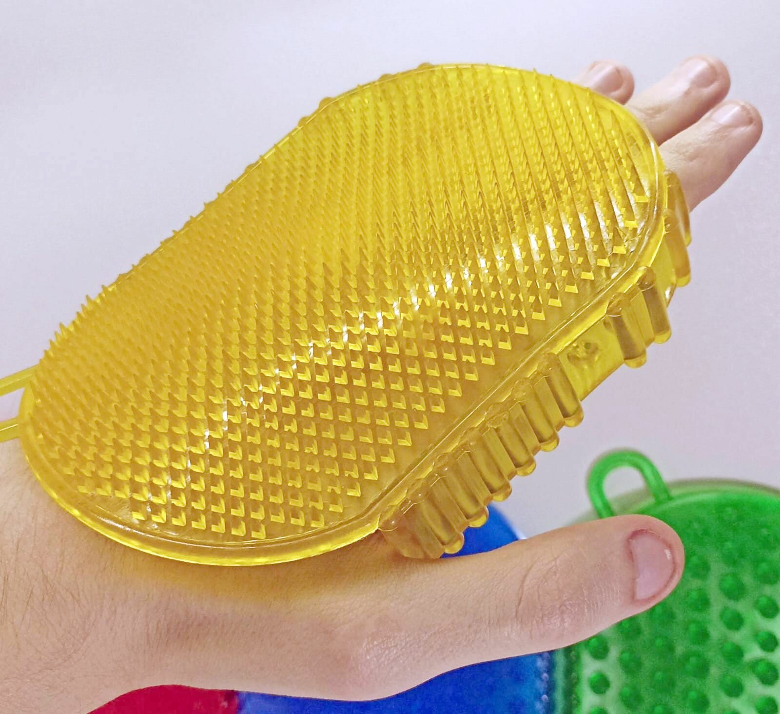 Чудо-варежка, массажер для тела. Имеет две разные поверхности. Более мелкие мягкие иголочки и более крупные пожестче. Активно рекламируется сейчас косметологами. Используется для антицеллюлитного массажа. Удобно применять в ванне с мылом и гелем для тела. Недостатки: Если честно, у меня до него руки не доходят. Раз попробовала и все. Особо не прониклась. Ну, не верю я в действие пупырчатого силикона. Висит в ванной на крючке. Если подумать, то почти все мочалки и щетки - тоже чудо-массажеры. Плюс еще и отмывают наше тело. |