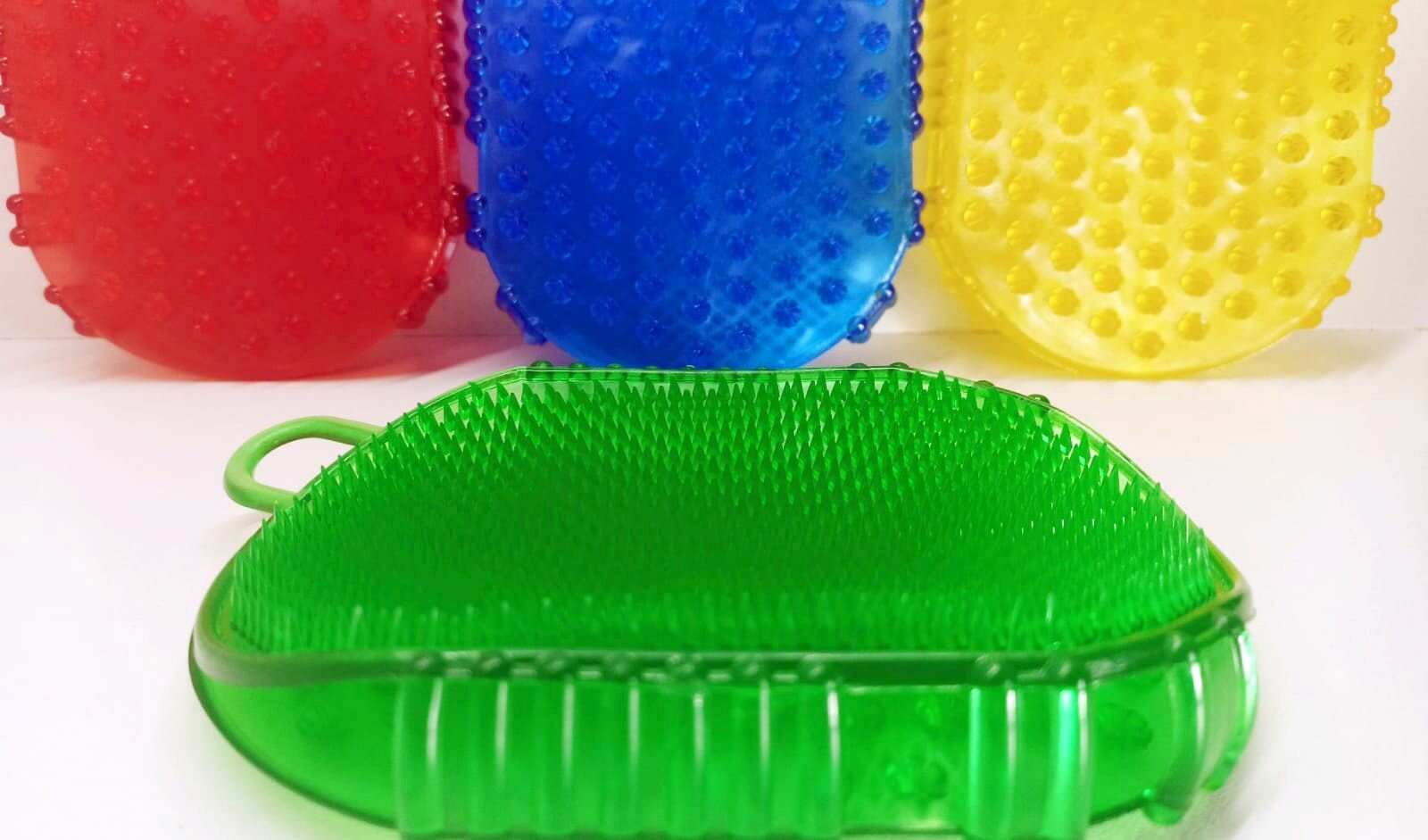 Чудо-варежка, массажер для тела. Имеет две разные поверхности. Более мелкие мягкие иголочки и более крупные пожестче. Активно рекламируется сейчас косметологами. Используется для антицеллюлитного массажа. Удобно применять в ванне с мылом и гелем для тела. Недостатки: Если честно, у меня до него руки не доходят. Раз попробовала и все. Особо не прониклась. Ну, не верю я в действие пупырчатого силикона. Висит в ванной на крючке. Если подумать, то почти все мочалки и щетки - тоже чудо-массажеры. Плюс еще и отмывают наше тело. |