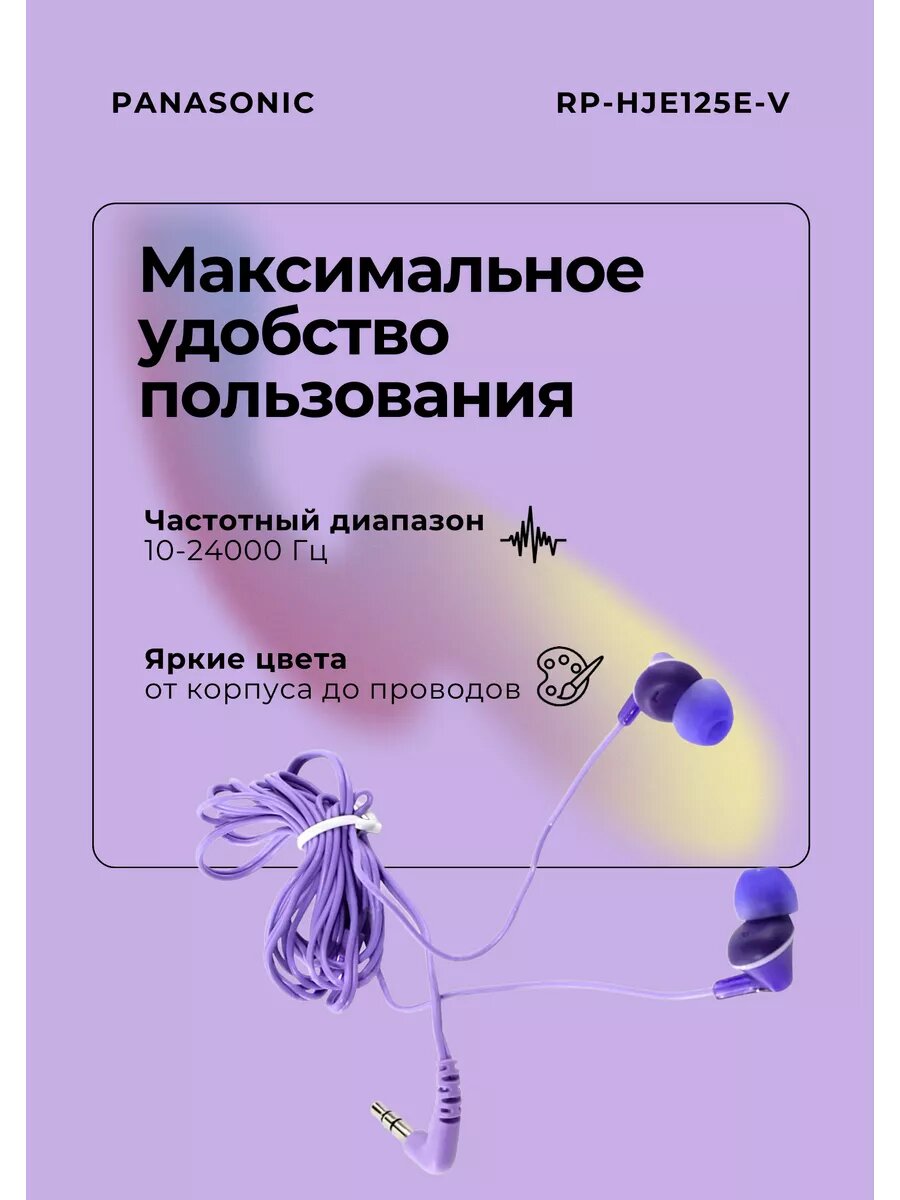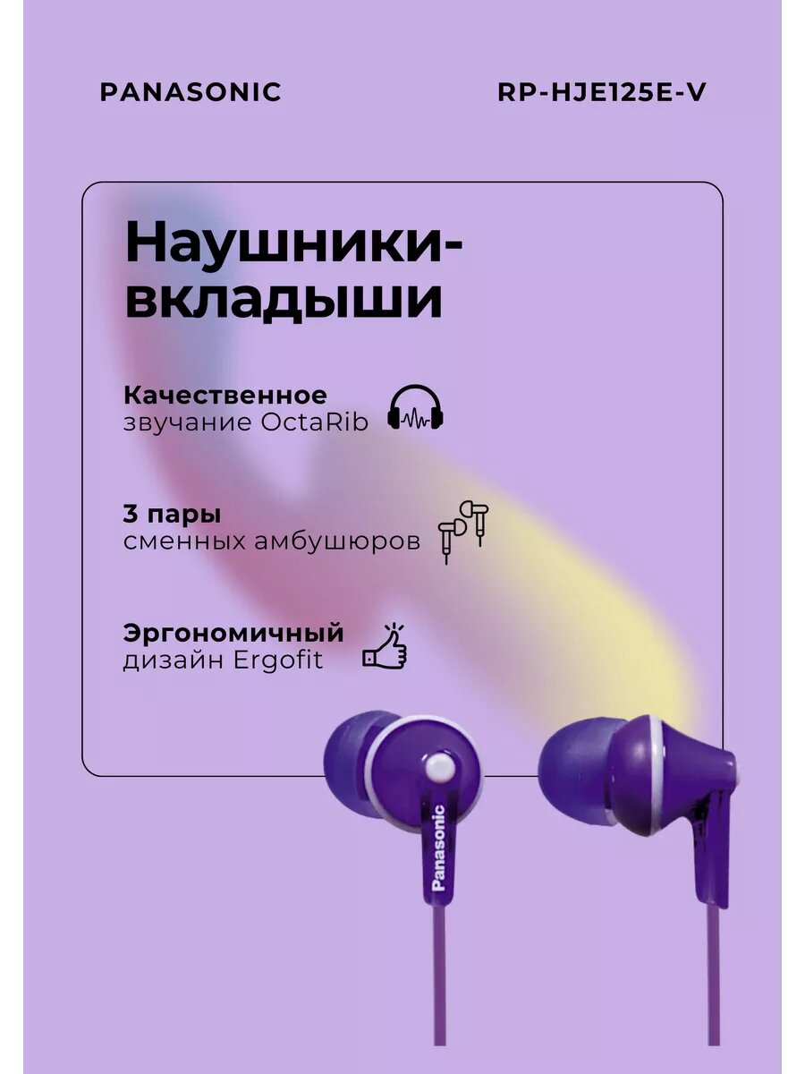 Наушники вкладыши Panasonic RP-HJE125E 1.1м фиолетовый проводные в ушной раковине (RP-HJE125E-V)