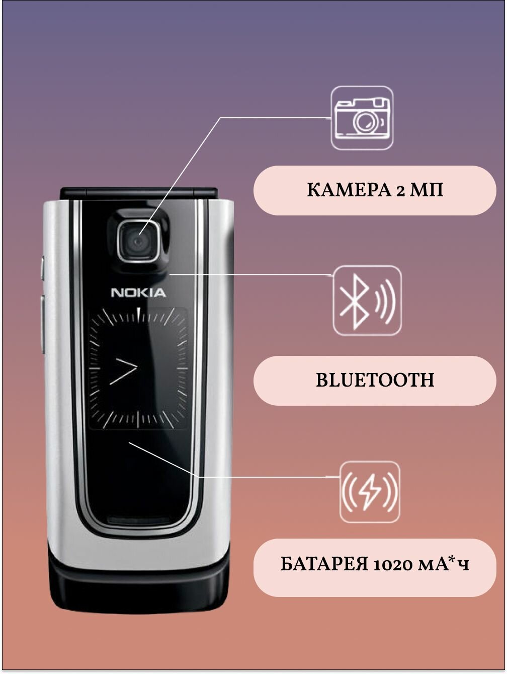 | Плюсы: | симпотичный телефончик, удобный в руке, |