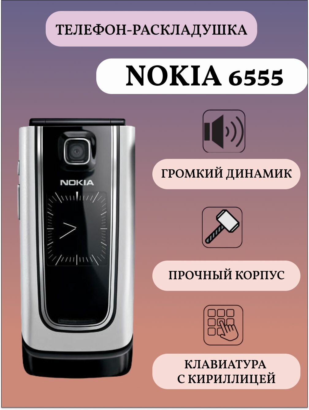 6555 Мобильный телефон раскладушка кнопочный серебристый интересное: