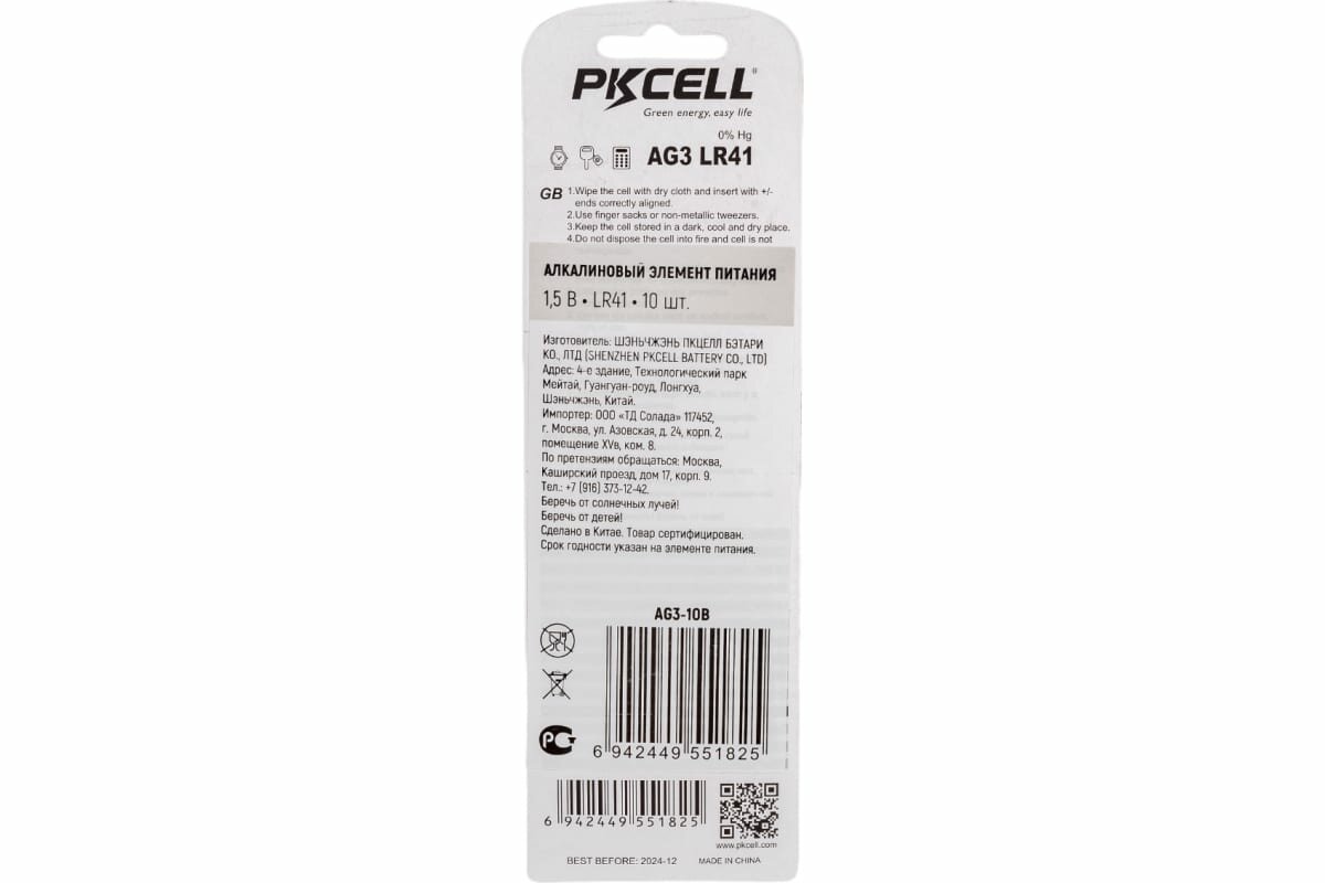 Pkcell LR41/AG3 AG3-10B (10 штук)