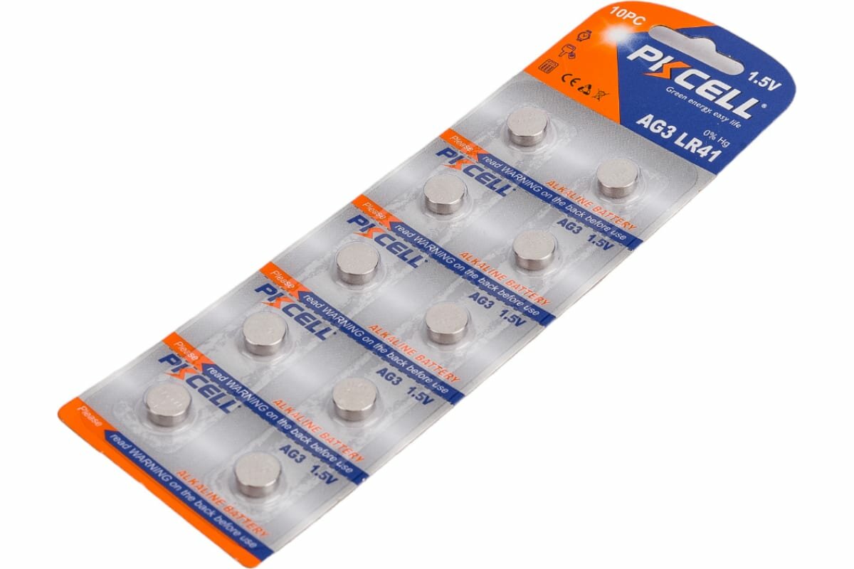 Щелочной/алкалиновый элемент питания PKCELL AG3-10B тип - LR41, AG3, 10 штук в блистере
