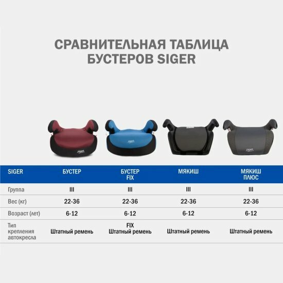 Удерживающее устройство для детей SIGER "Бустер FIX" синий, гр. III, 22-36 кг, 6-12 лет